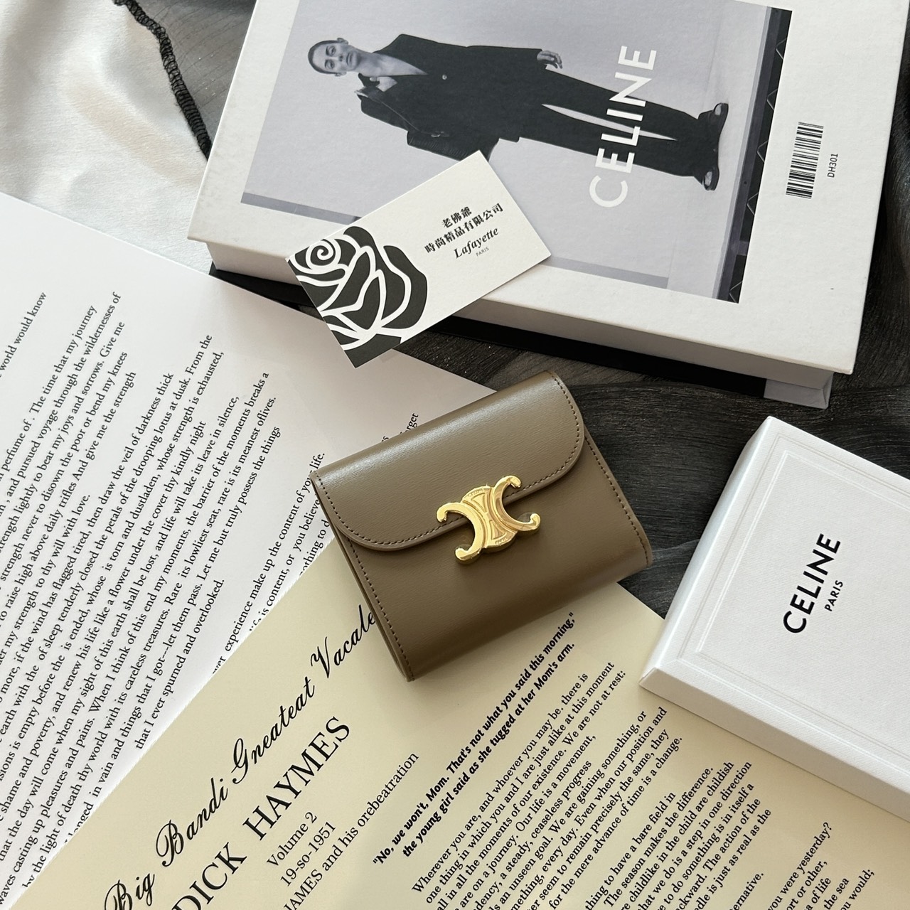 CELINE TRIOMPHE 凱旋暗棕褐色三折短夾