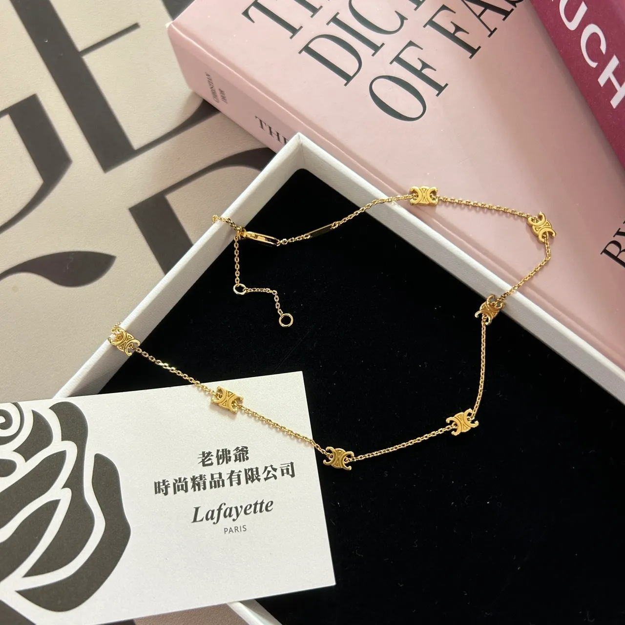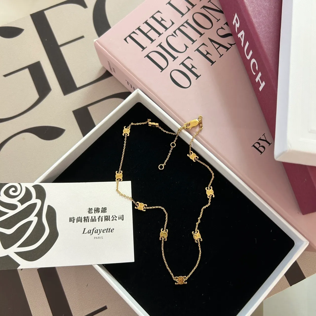 CELINE TRIOMPHE 金色飾面黃銅迷你頸鏈