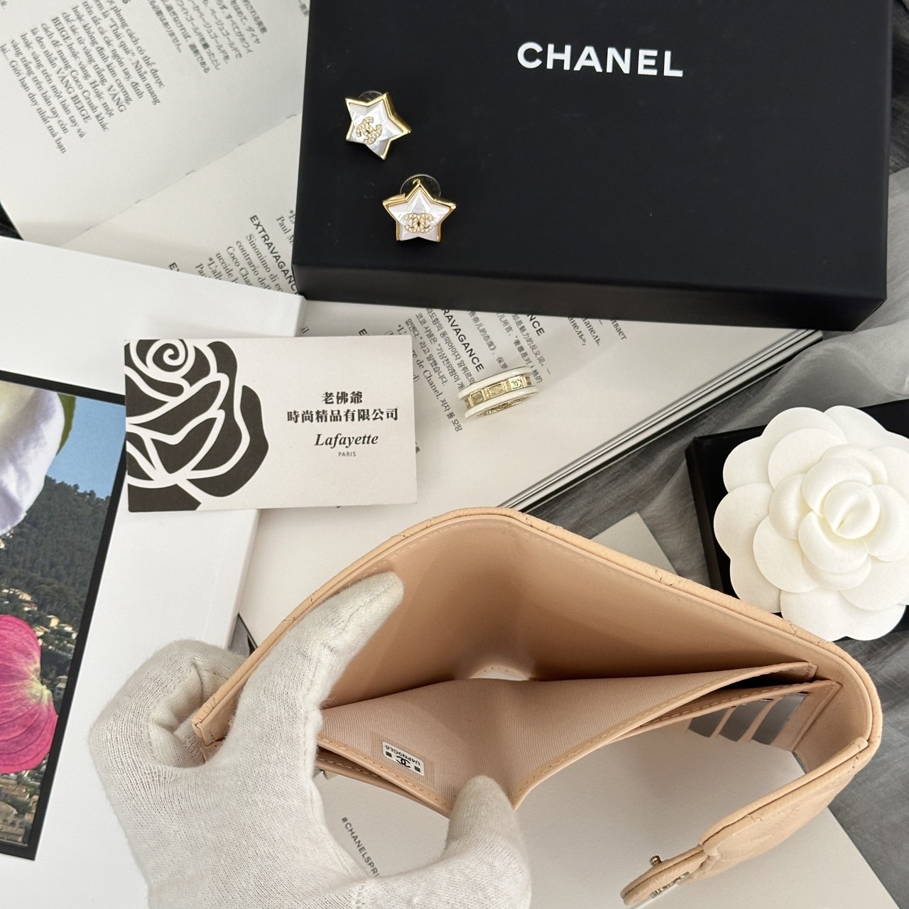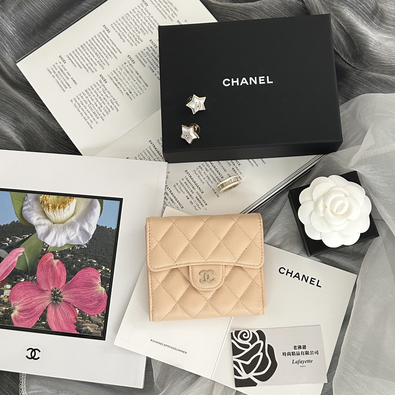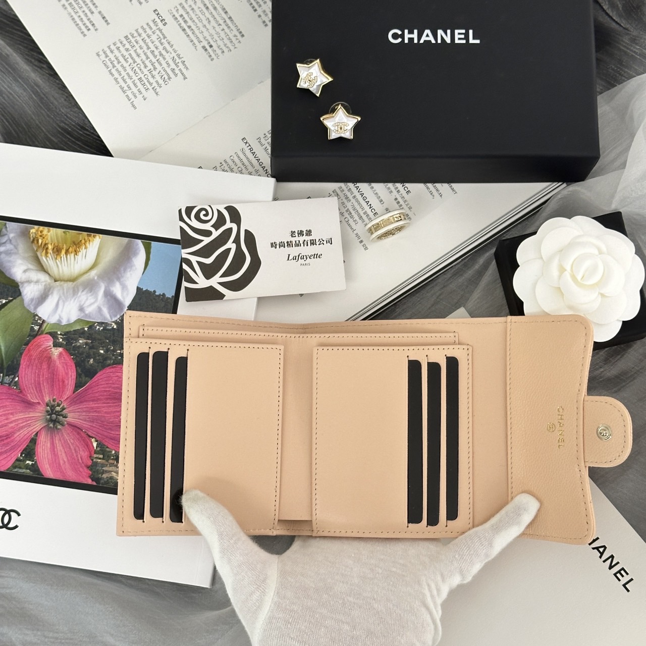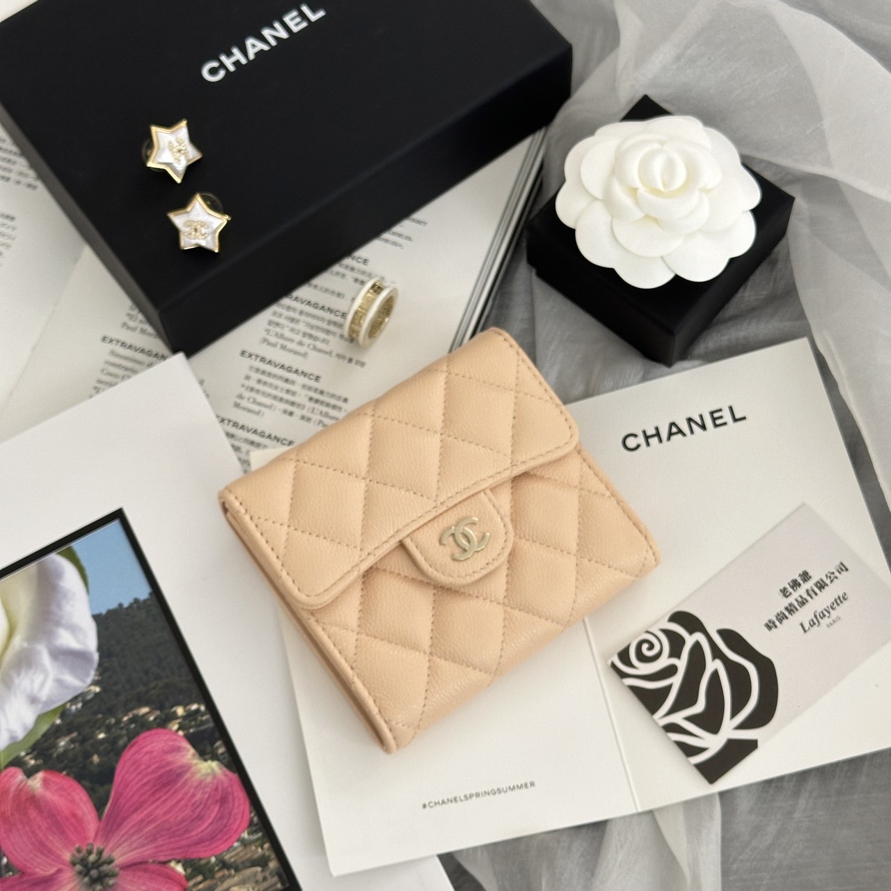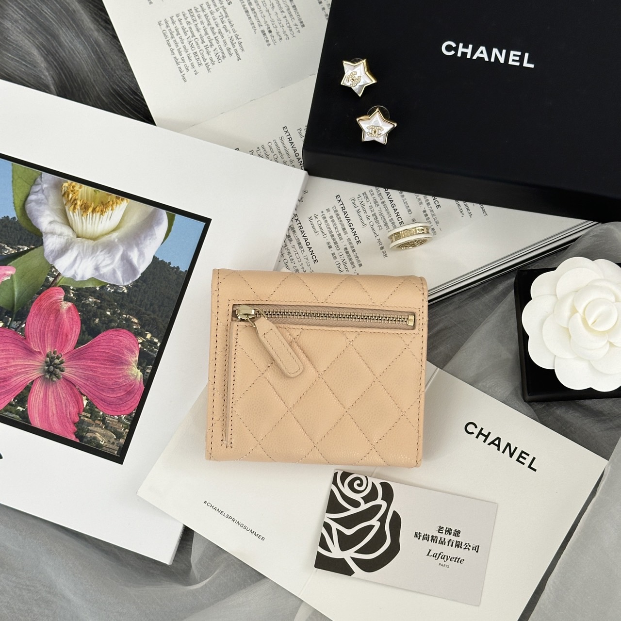 CHANEL COCO 粉膚色淡金釦荔枝牛皮三折短夾