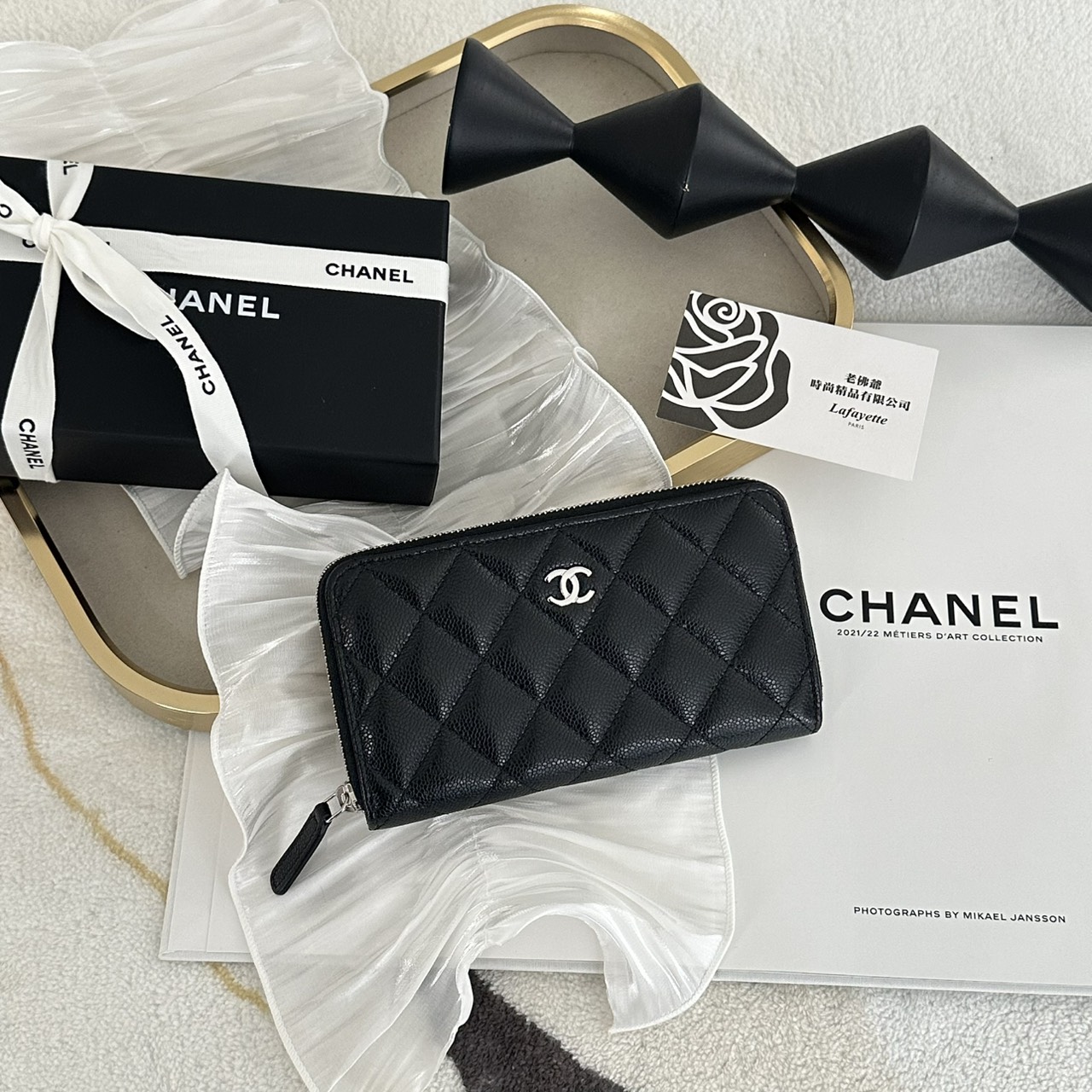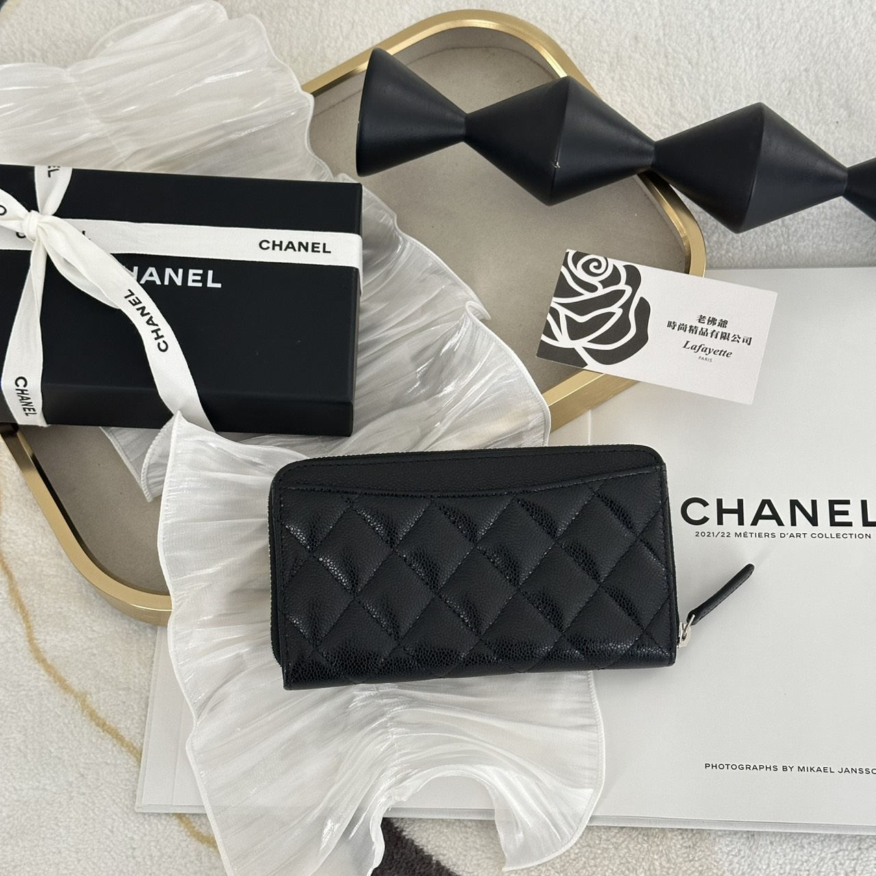 CHANEL COCO 菱格紋銀釦拉鏈中夾