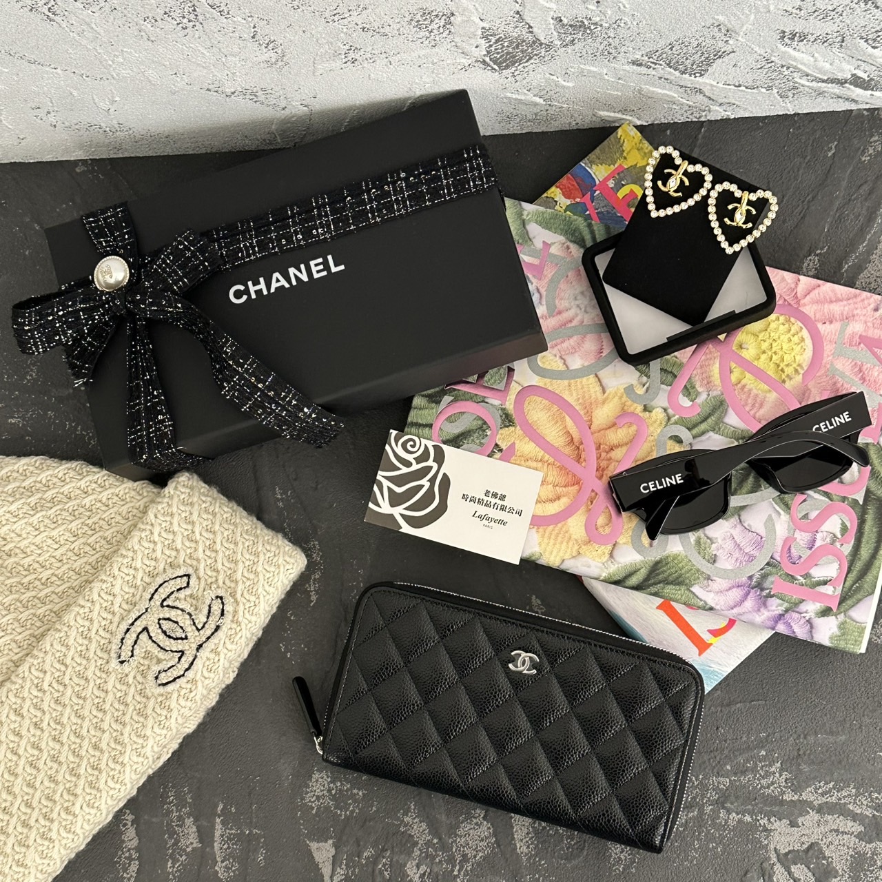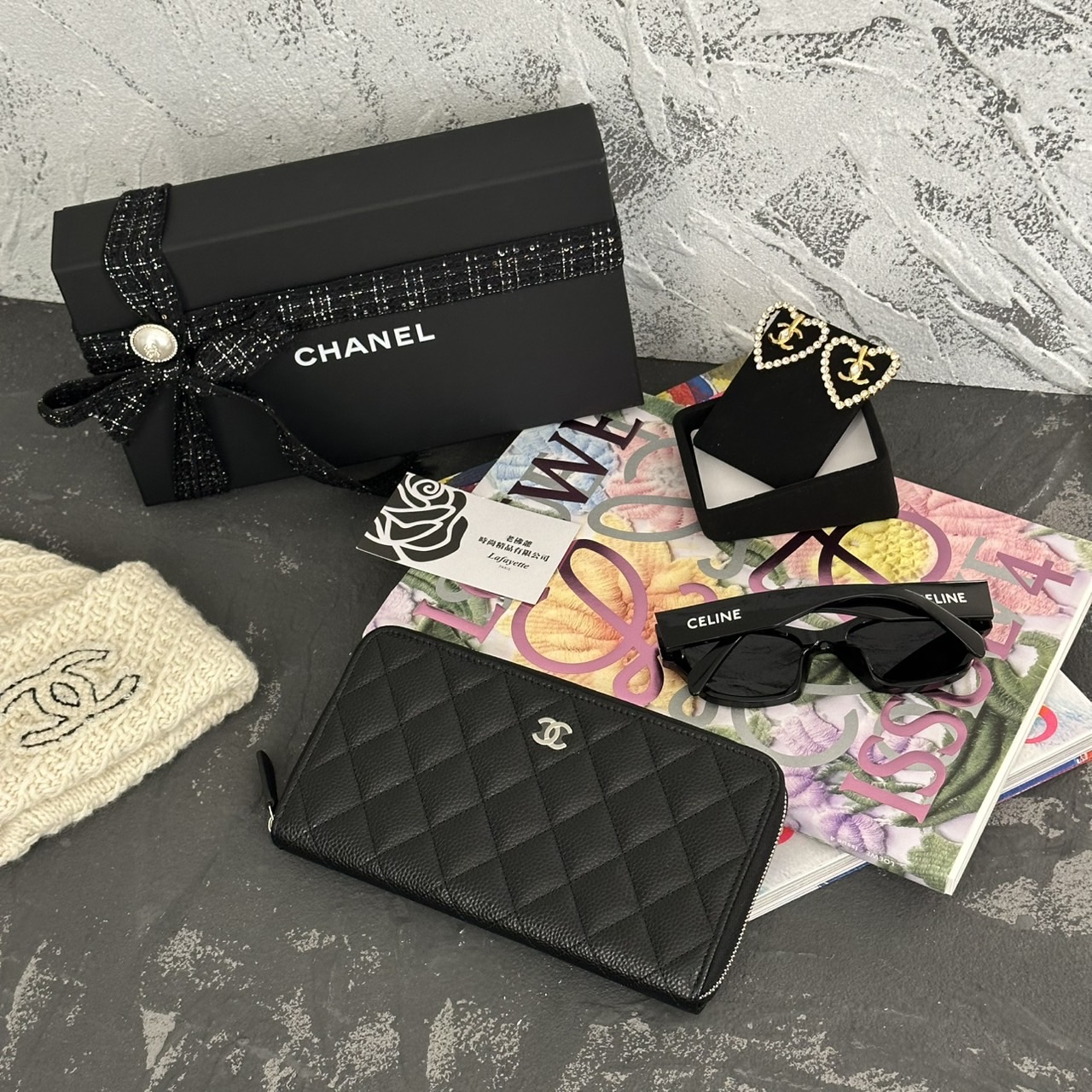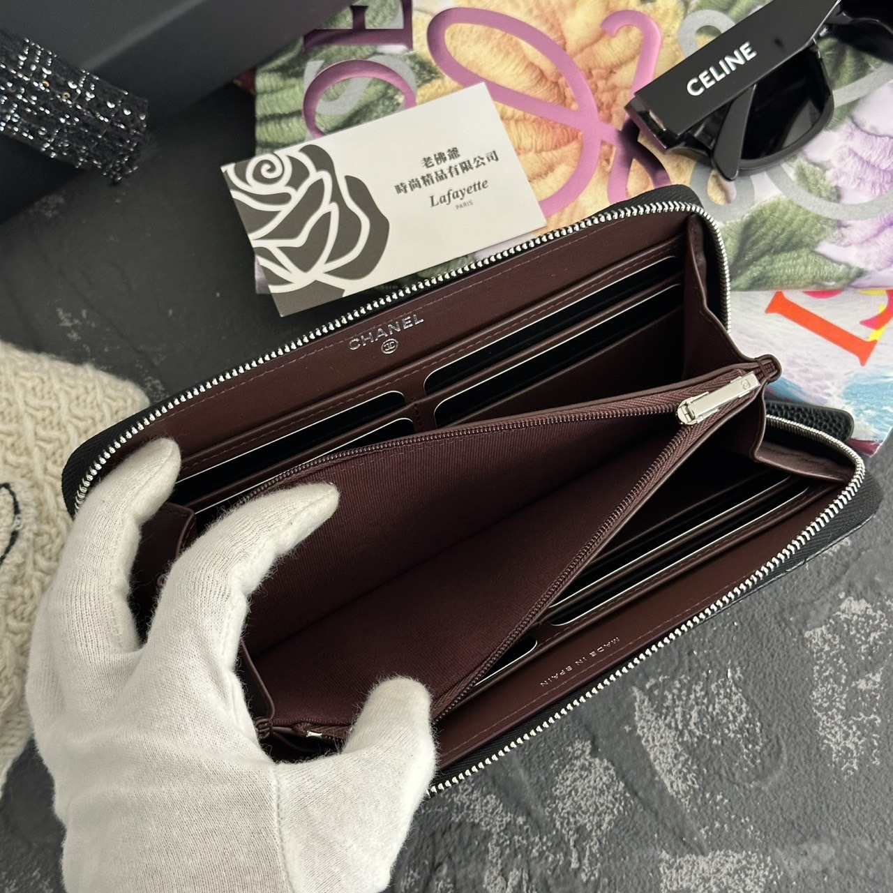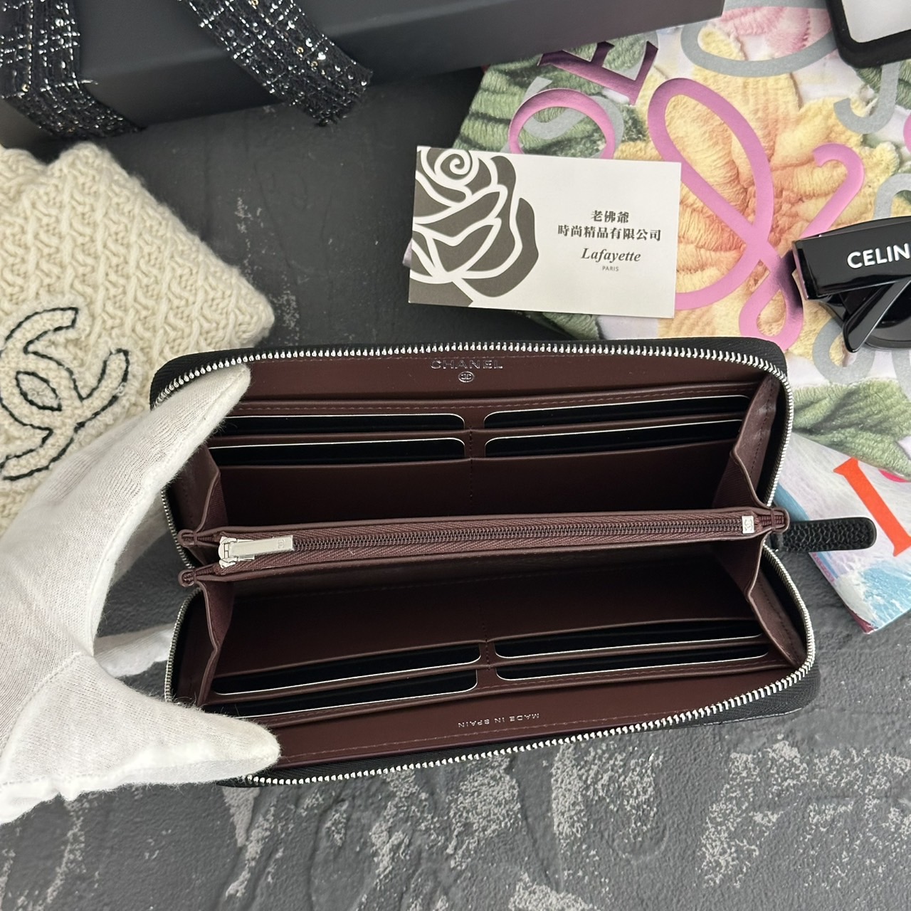 CHANEL COCO 菱格紋銀釦荔枝小牛皮拉鍊長夾