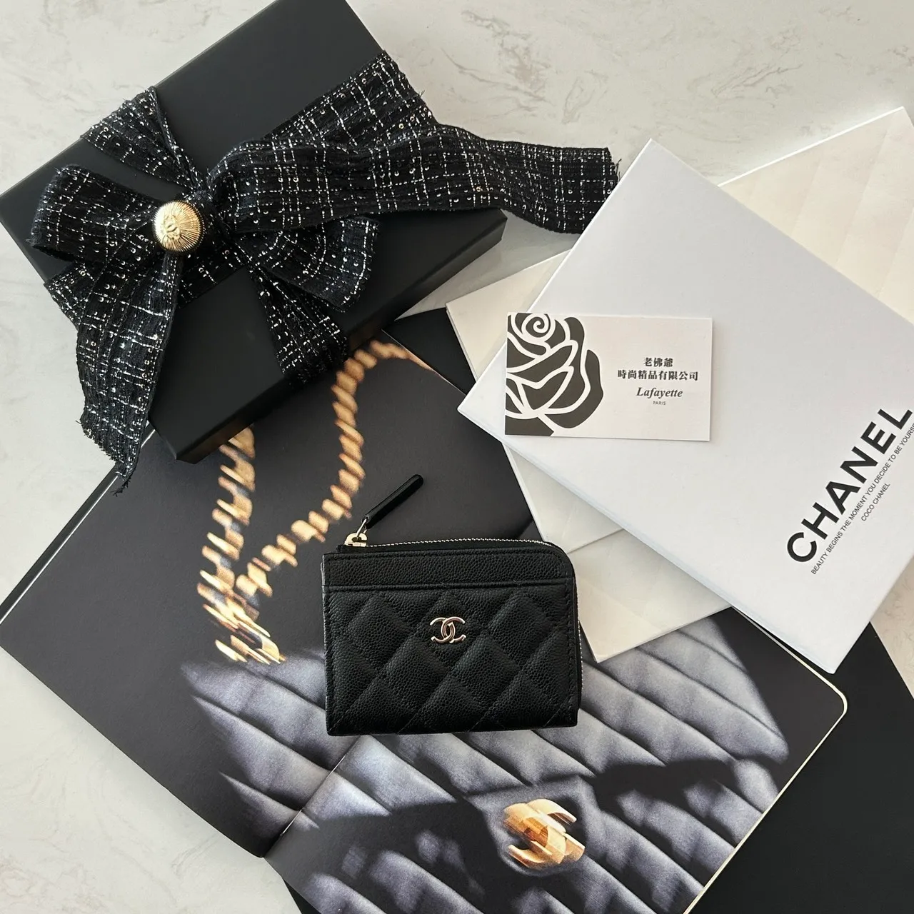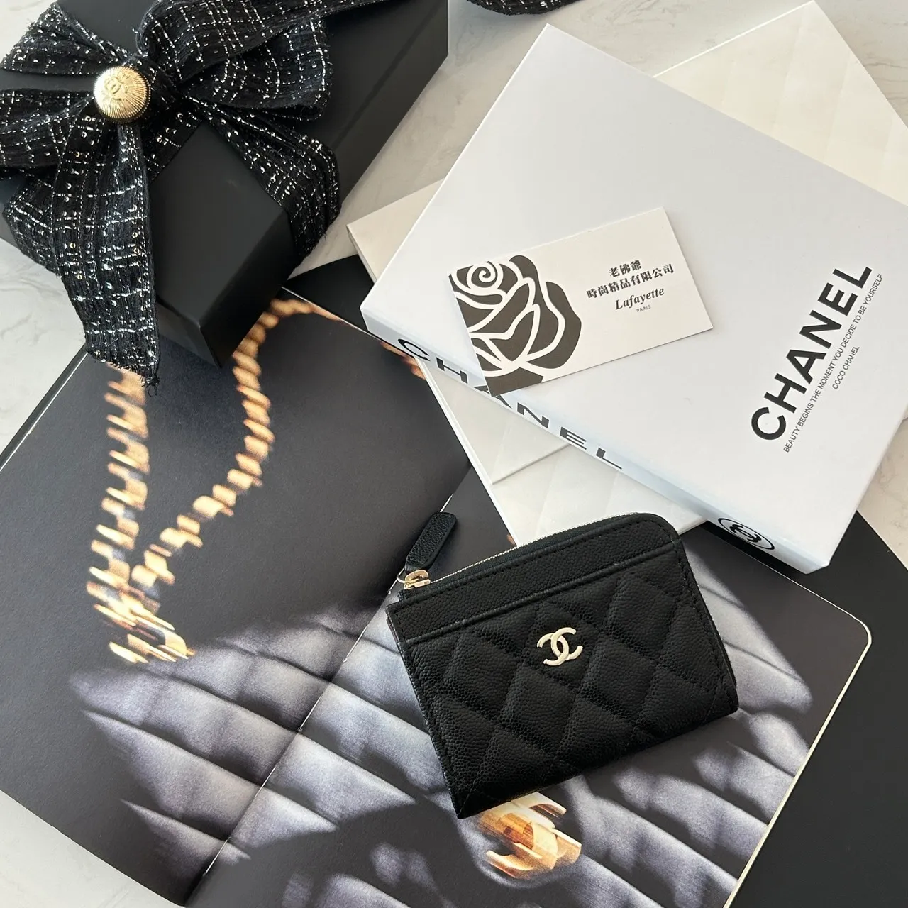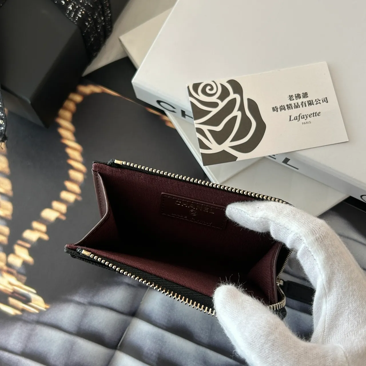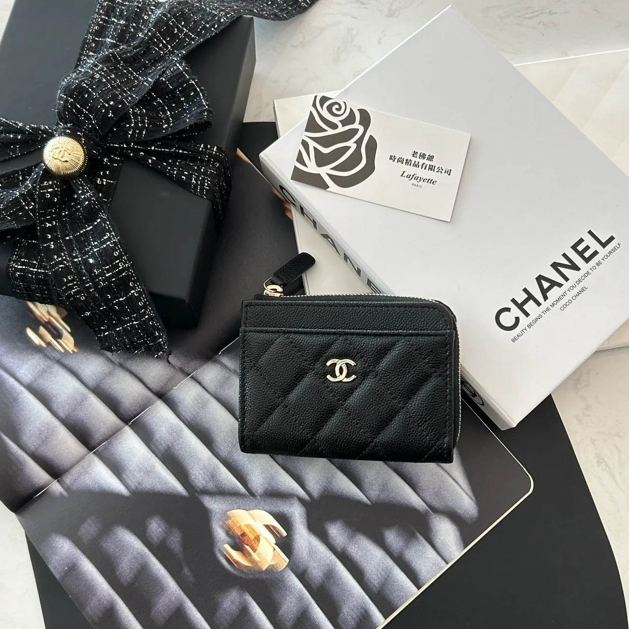 CHANEL COCO 26P 黑金L型拉鏈卡夾包