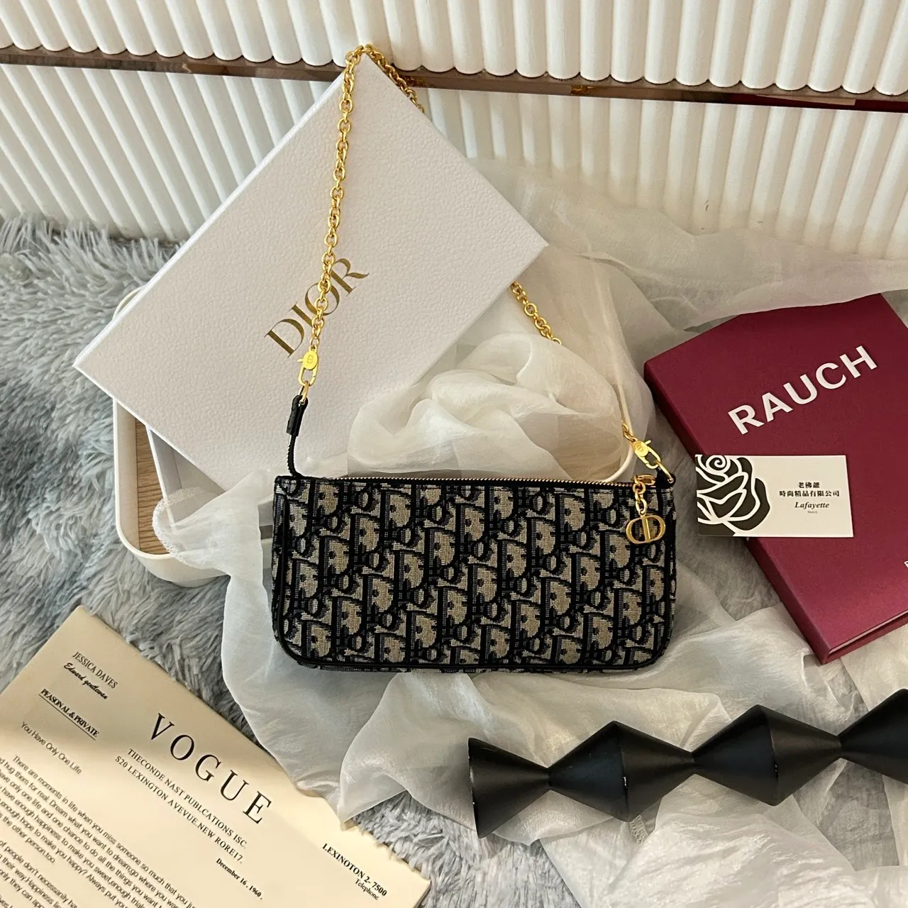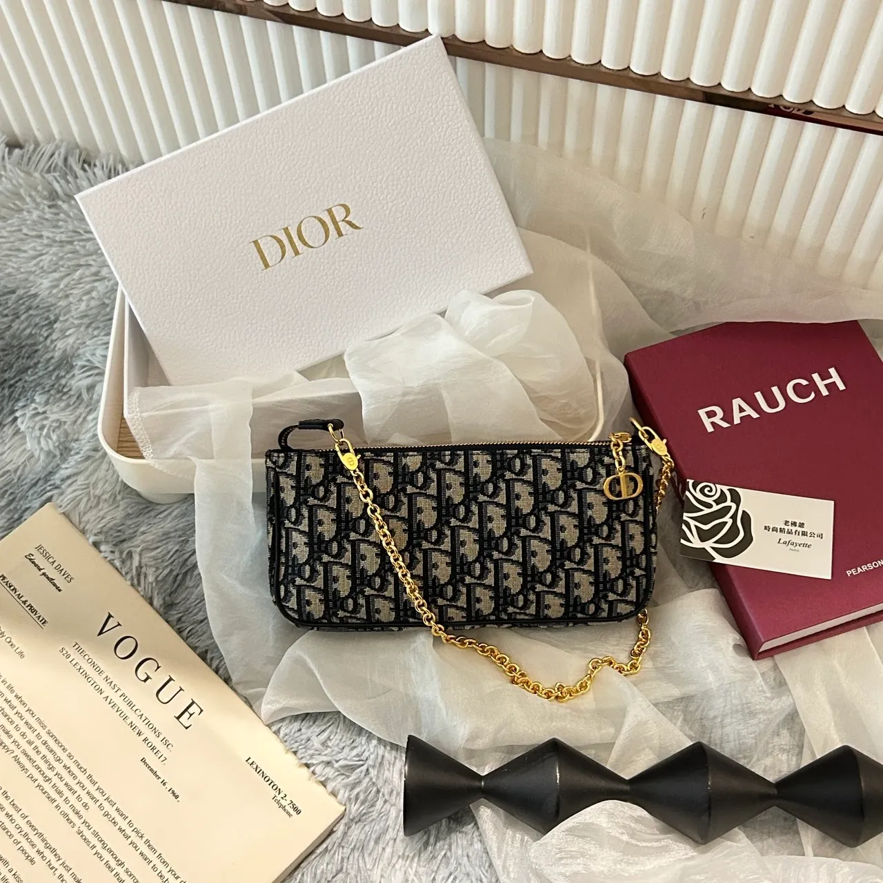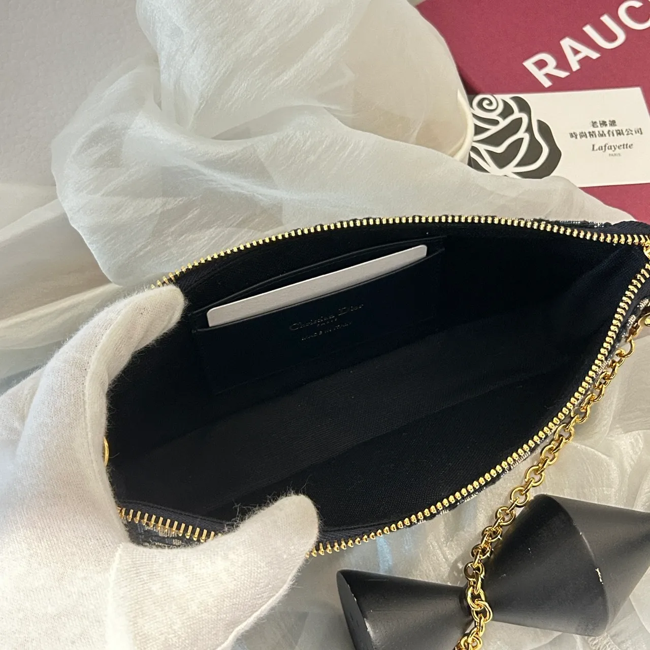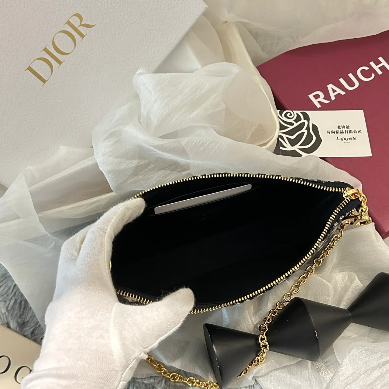 DIOR 30 MONTAIGNE 藍色緹花附鏈帶手拿包