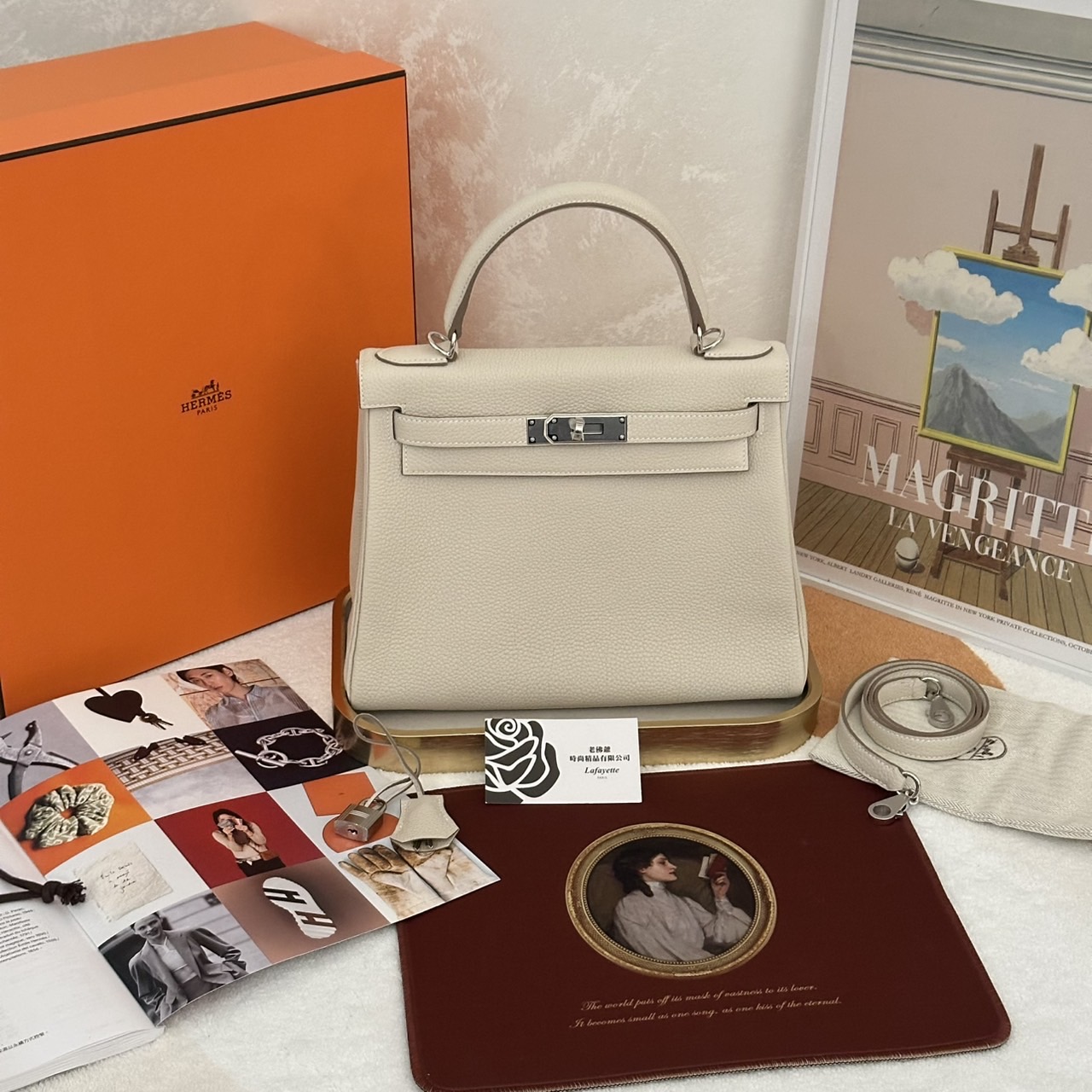 Hermès 奶昔白銀釦 KELLY Ⅱ 28cm