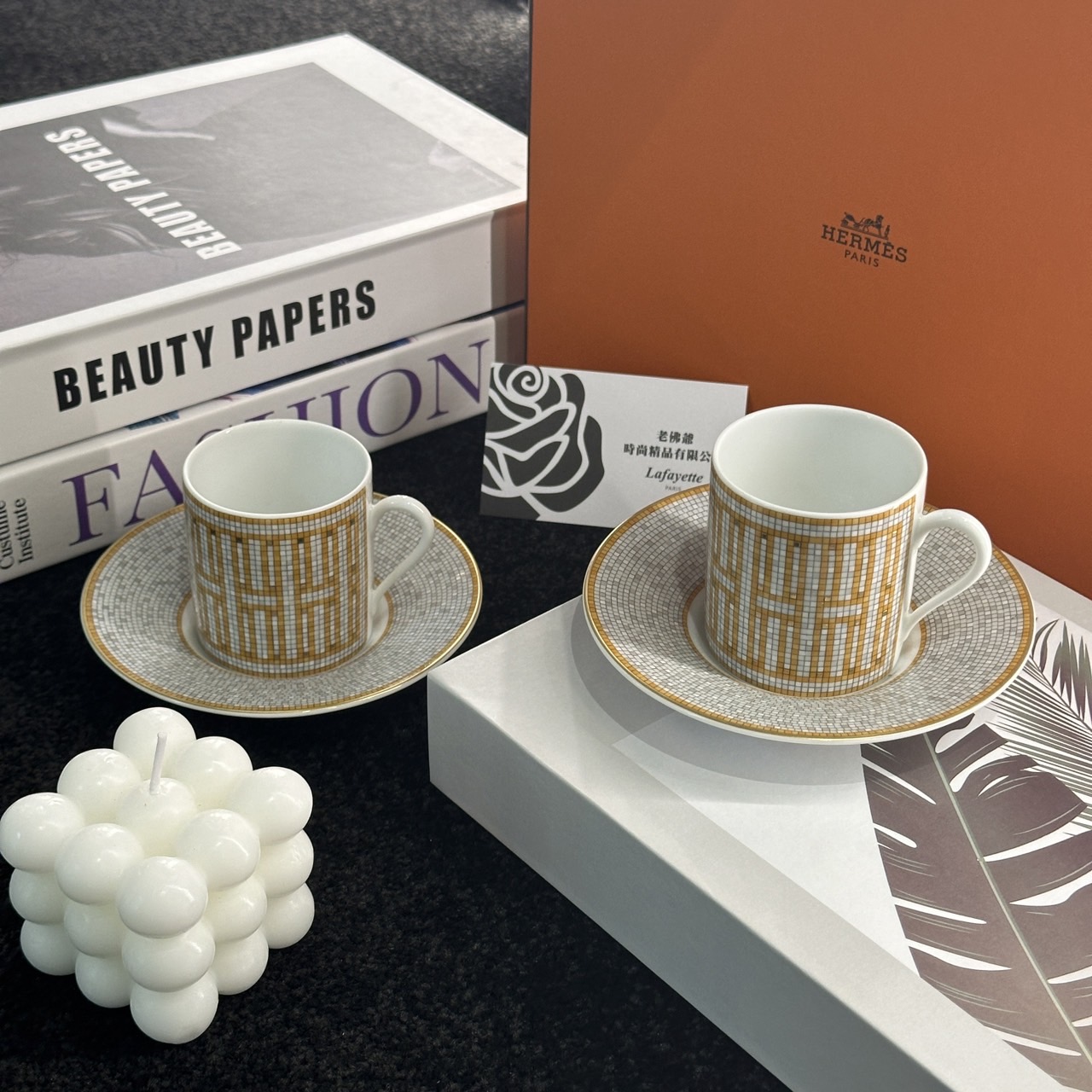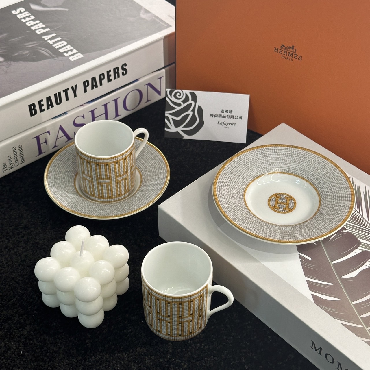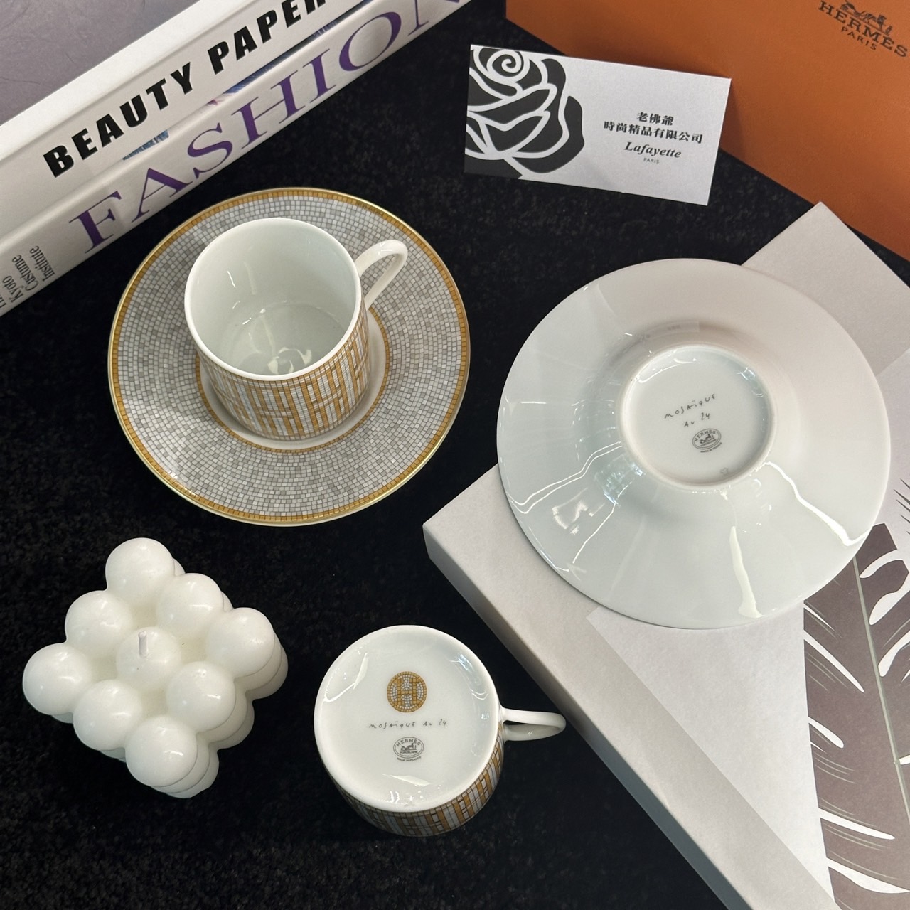 Hermès Mosaique au 24 platinum 金色咖啡杯盤ღ