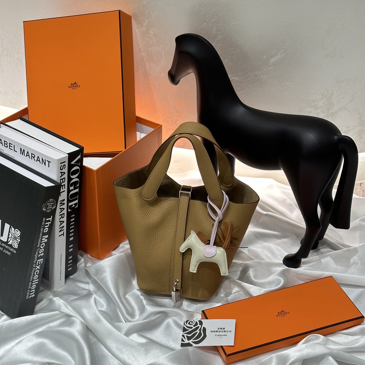 Hermès Picotin Lock 餅乾色銀釦菜籃子 18cm