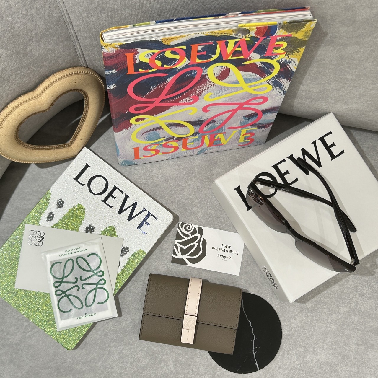 LOEWE 灰褐色/滑石色牛皮三折短夾