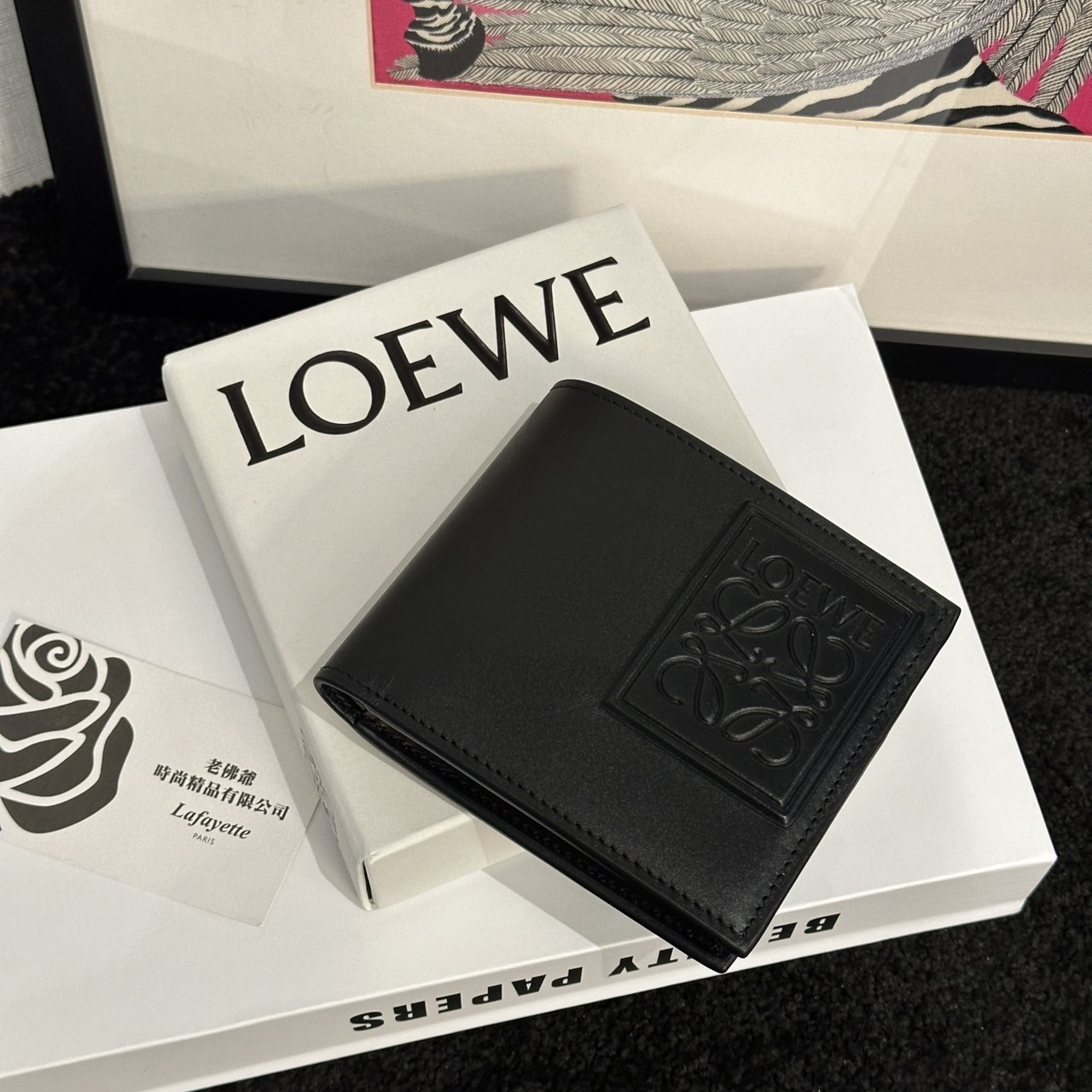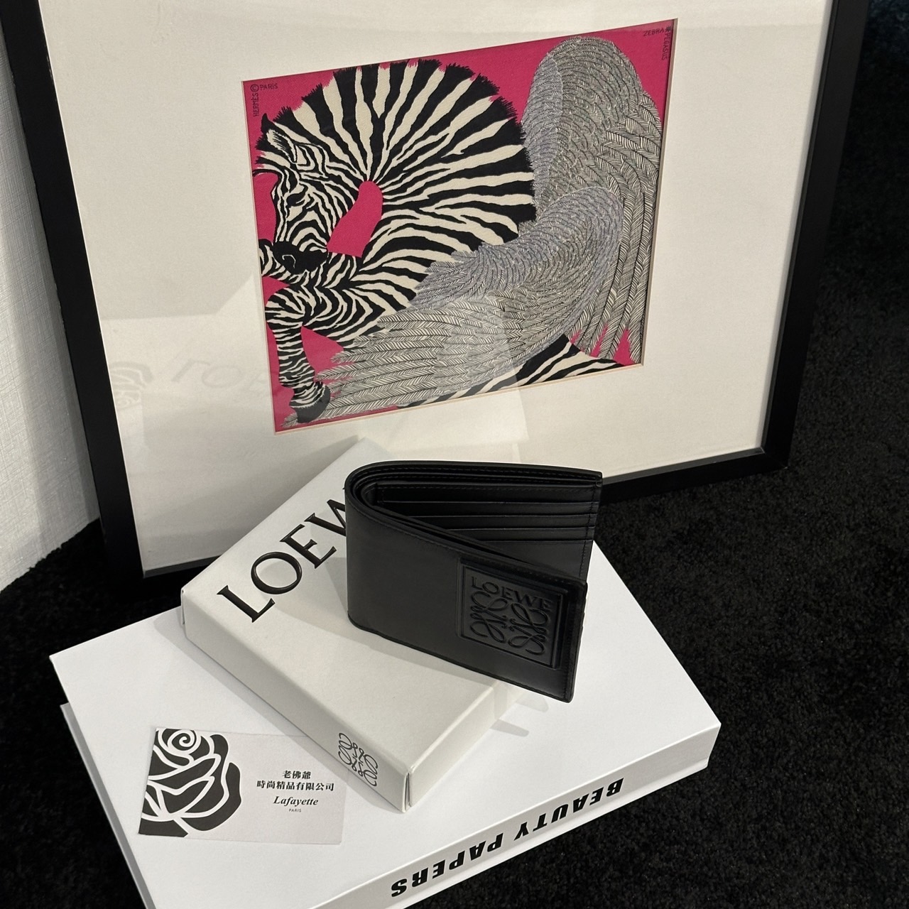 LOEWE Bifold 經典牛皮黑色八卡男短夾