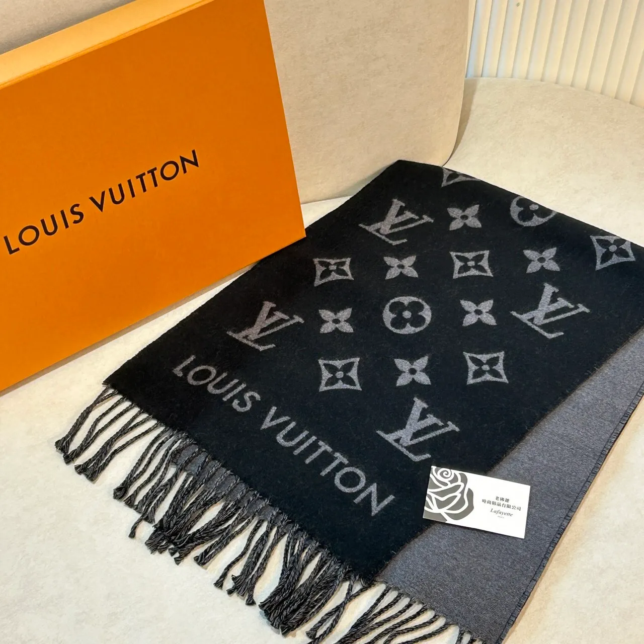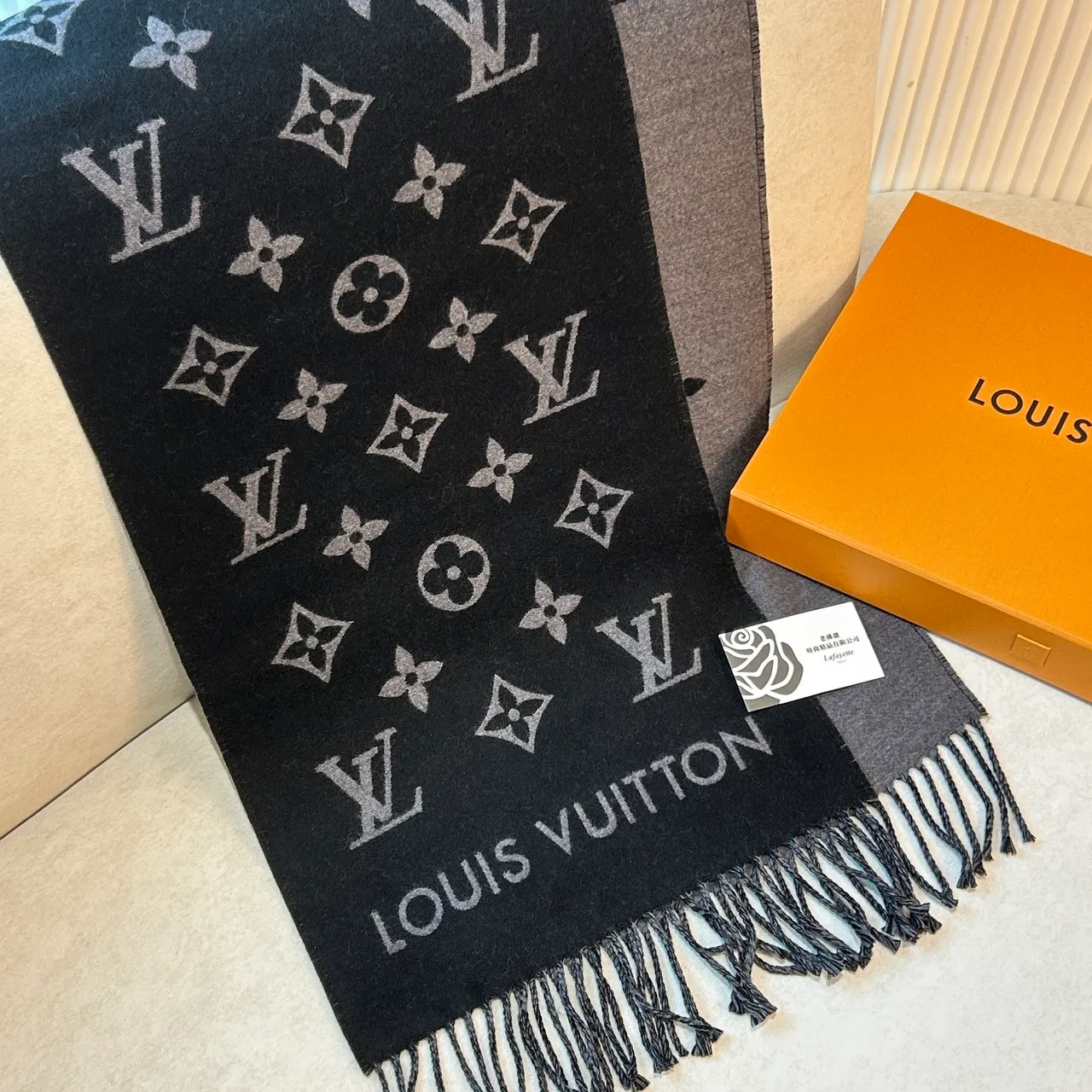 LOUIS VUITTON M79225 All About Monogram 黑色圍巾
