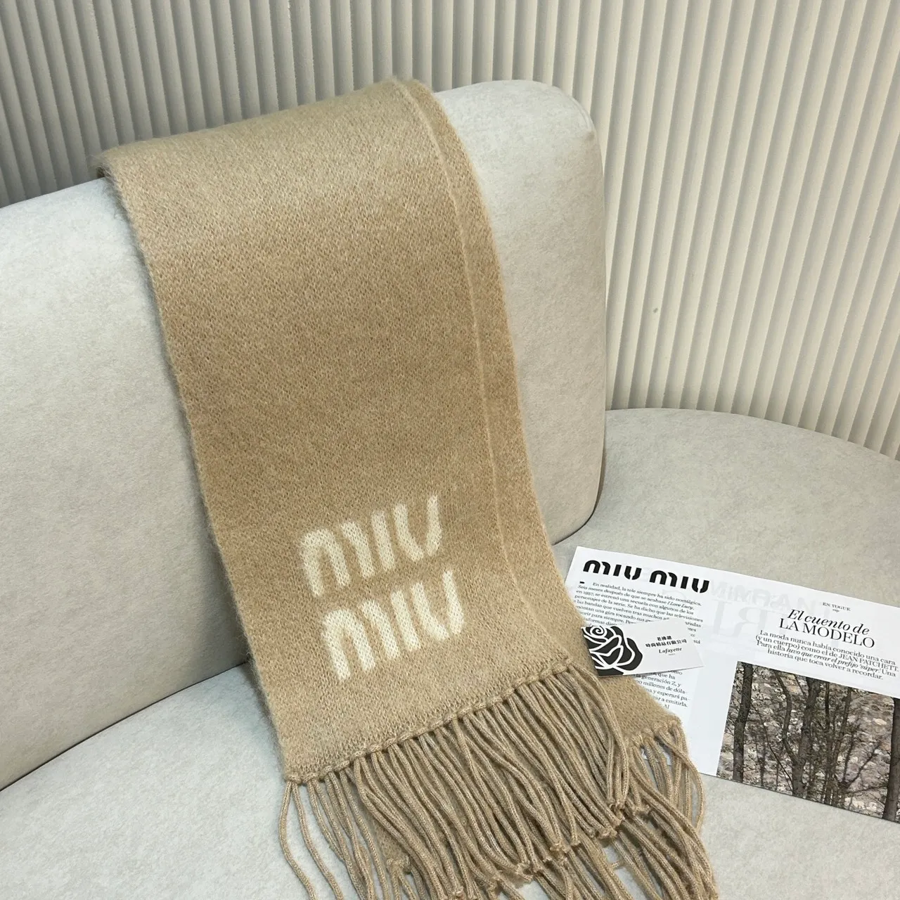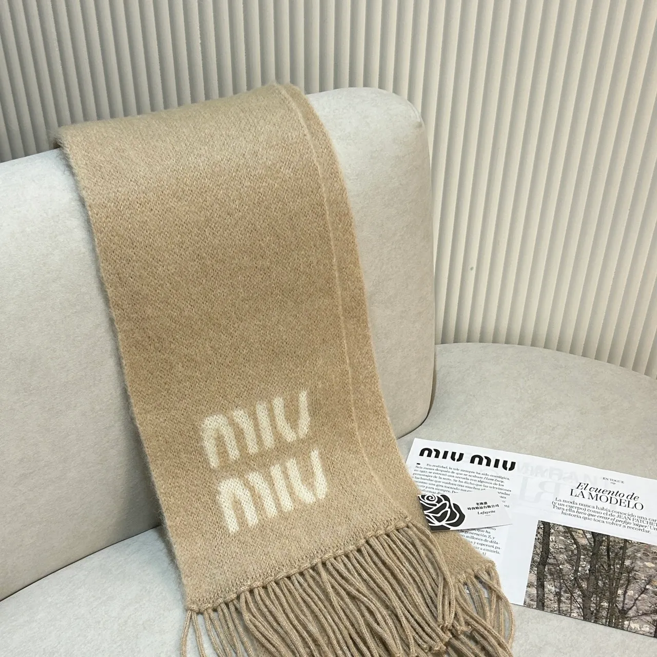 MIUMIU 奶茶色羊毛混馬海毛圍巾