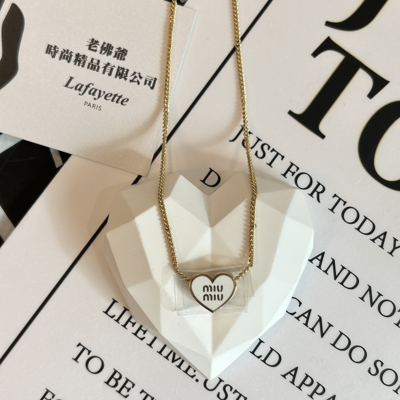 MIUMIU 白色愛心琺瑯金屬項鏈