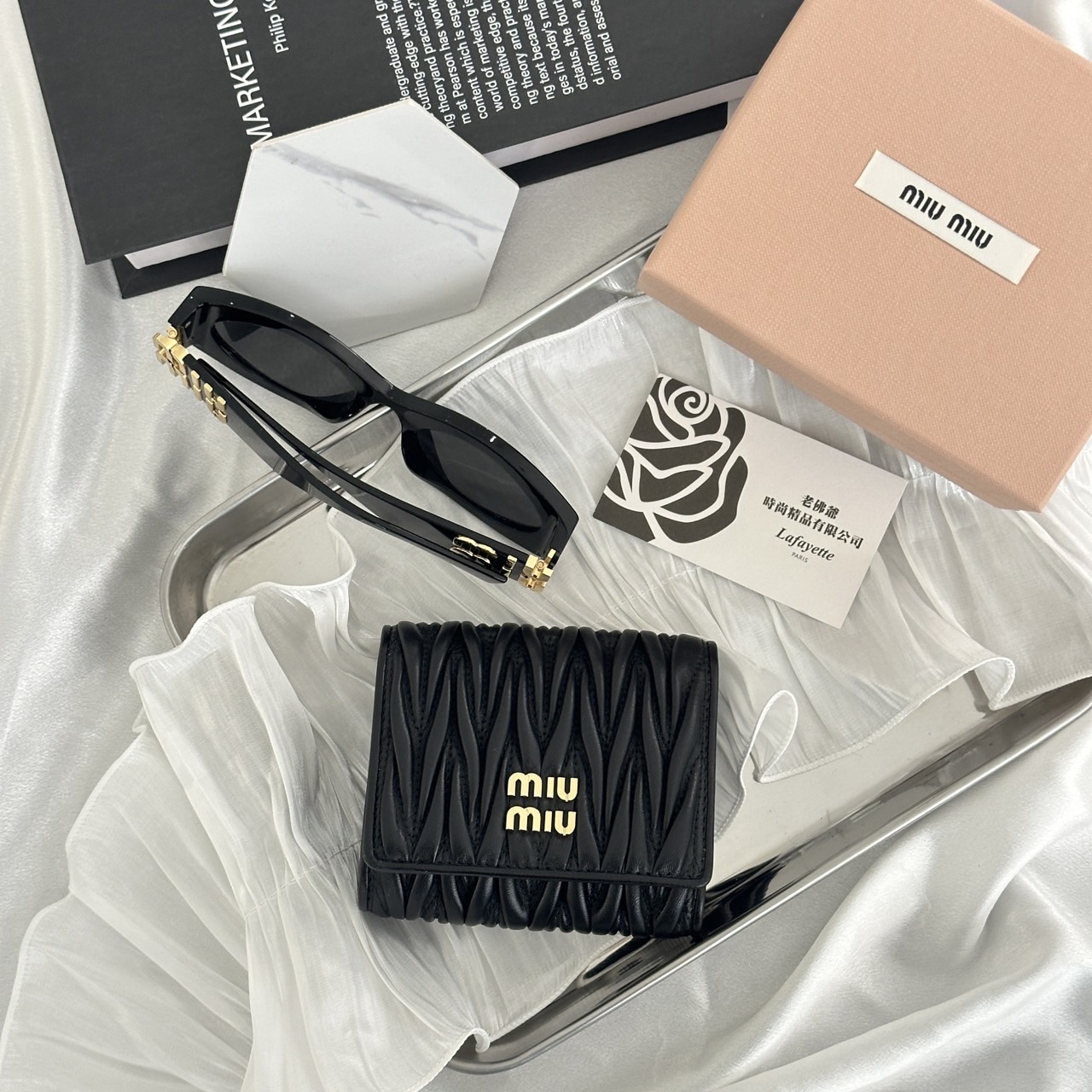 MIUMIU Matelassé 三折黑色短夾
