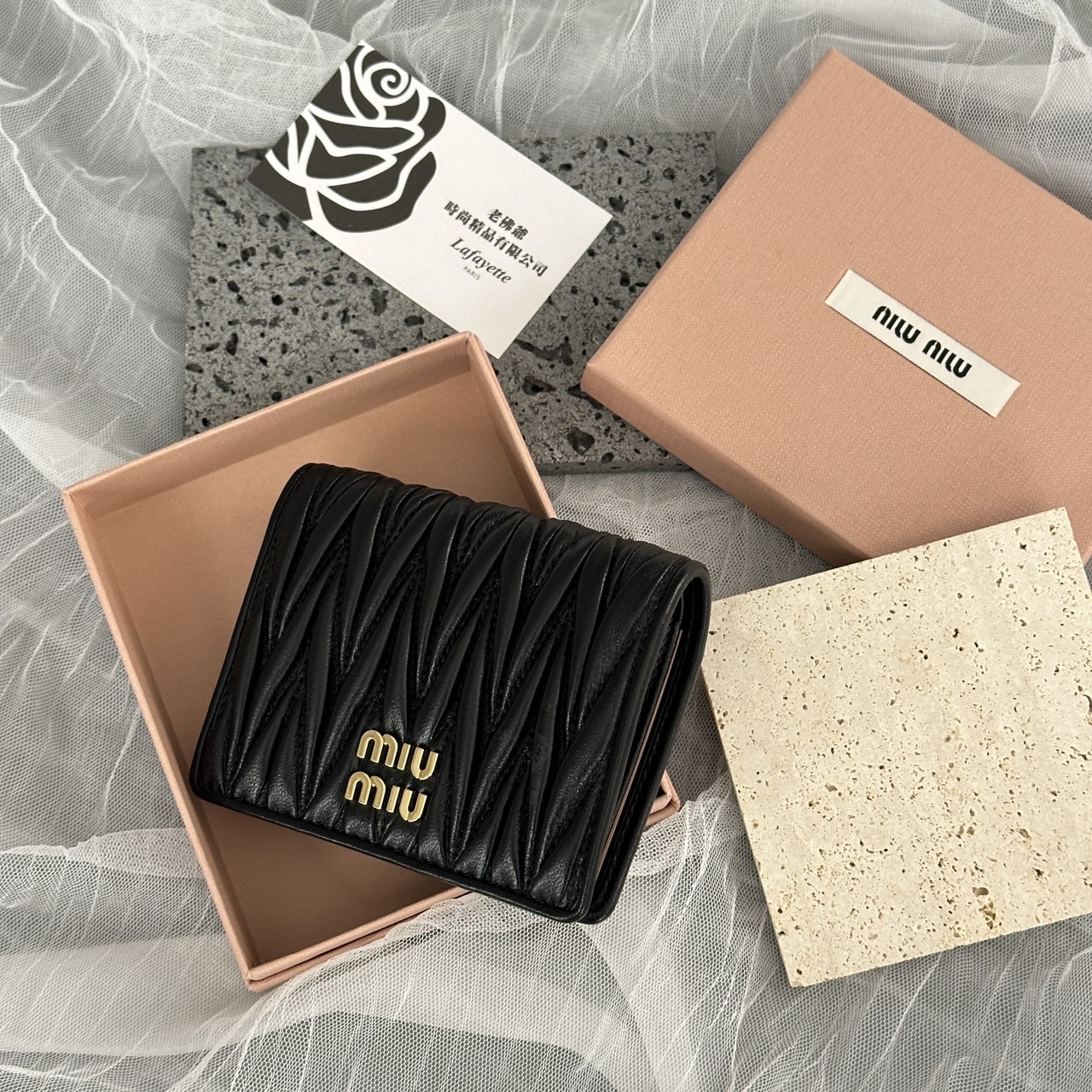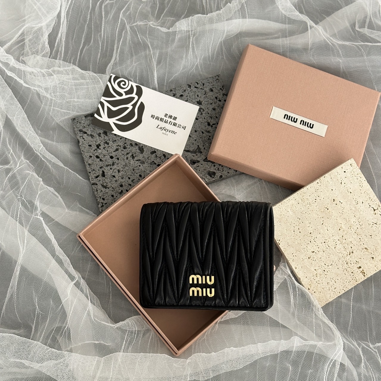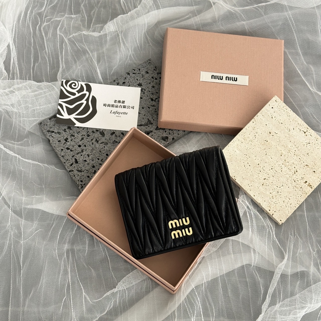 MIUMIU Matelassé 兩折黑色短夾