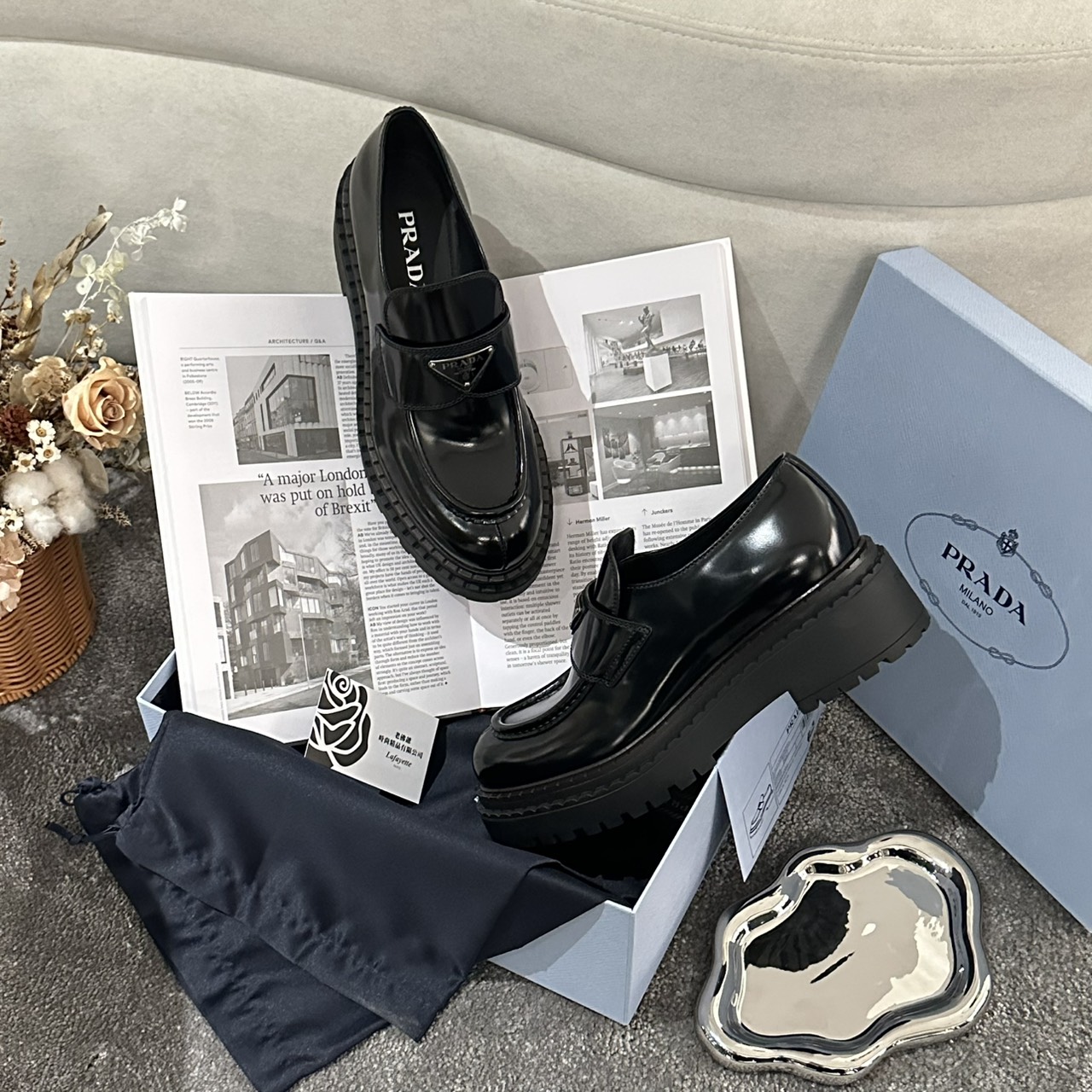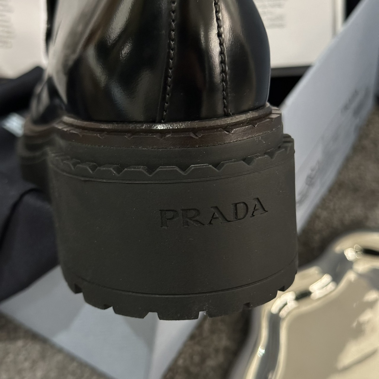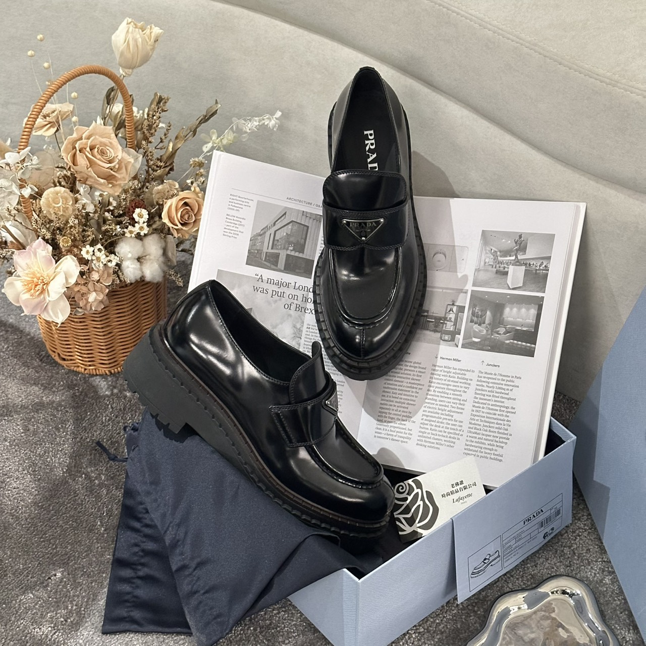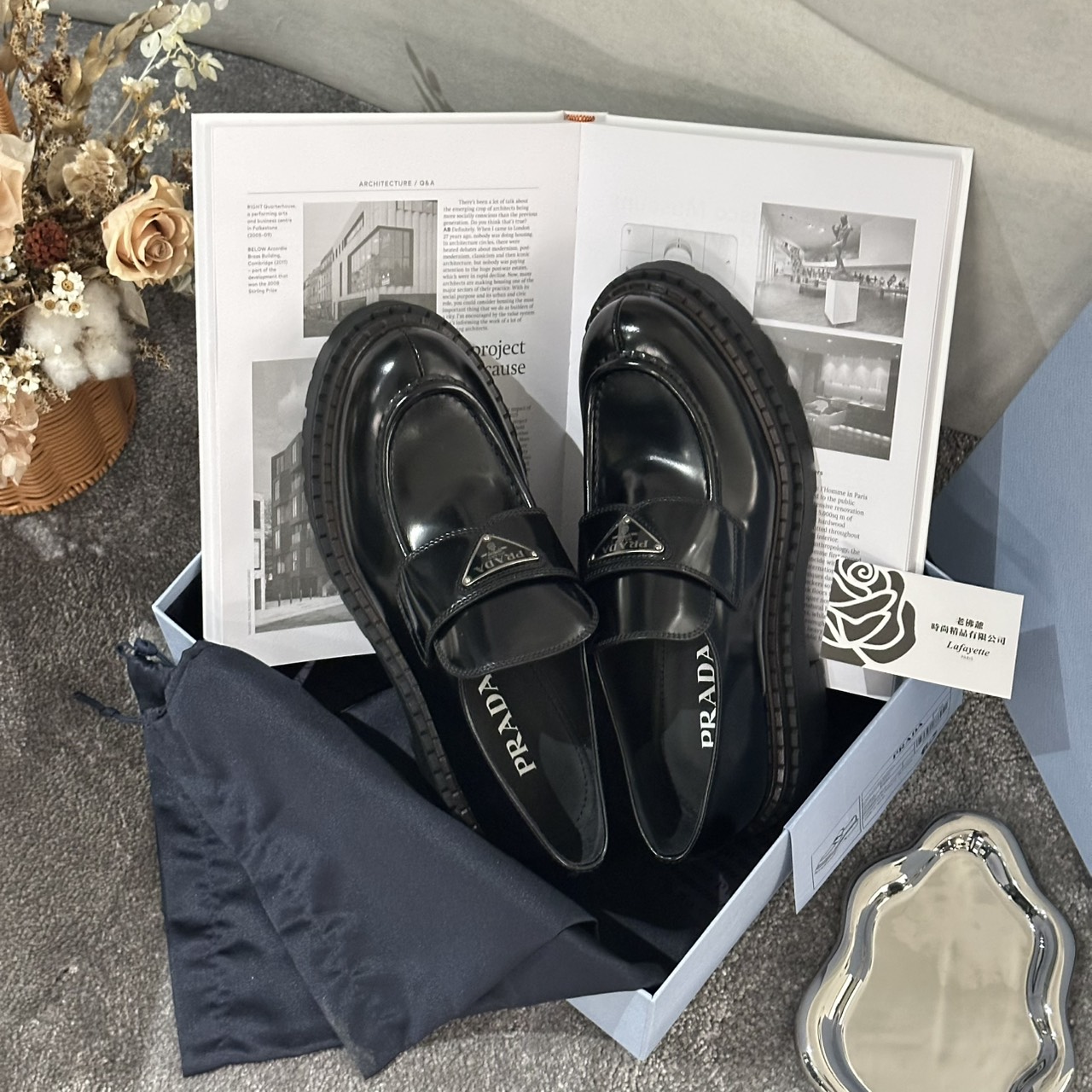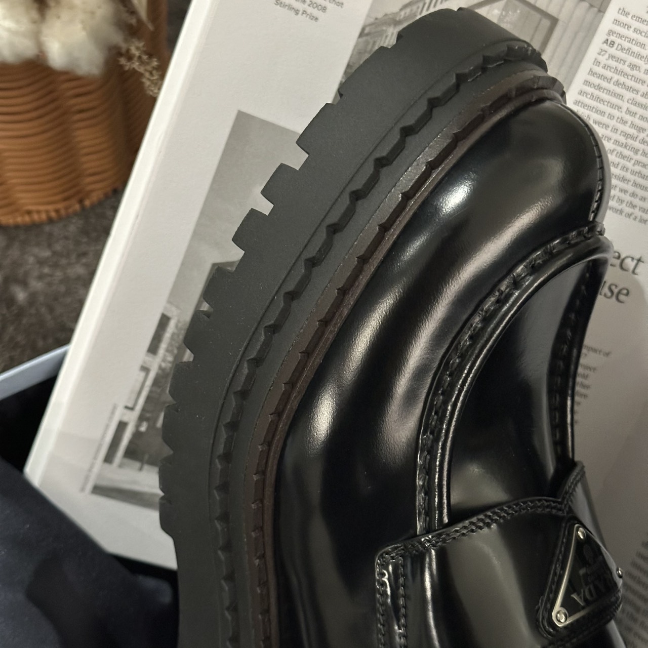 PRADA 巧克力雙齒輪皮革樂福鞋