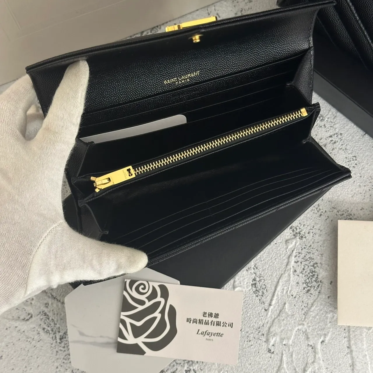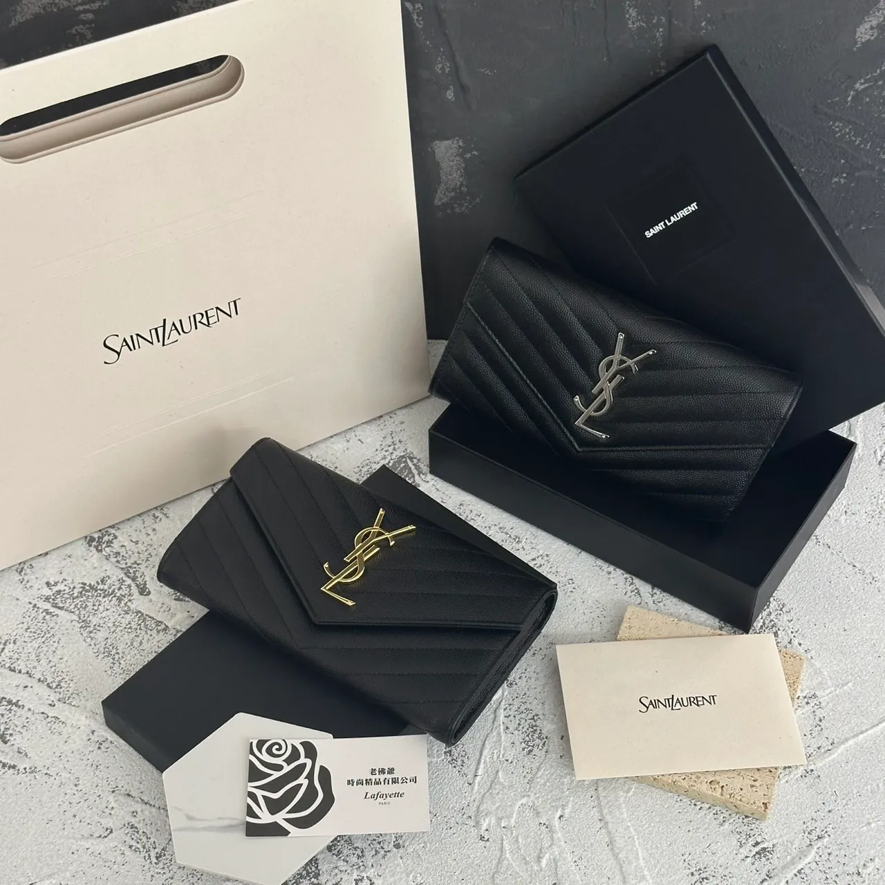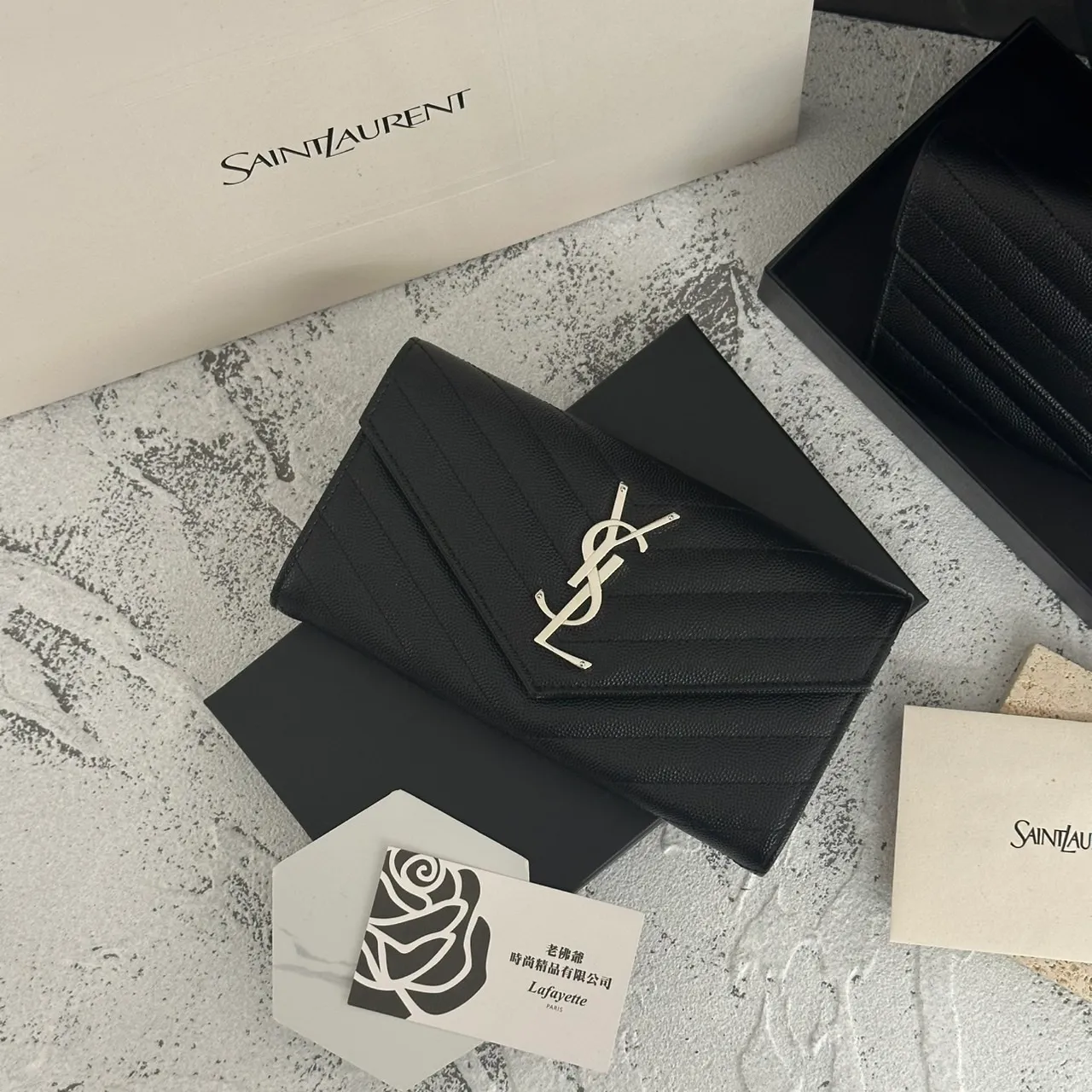 SAINT LAURENT 經典魚子醬牛皮信封長夾