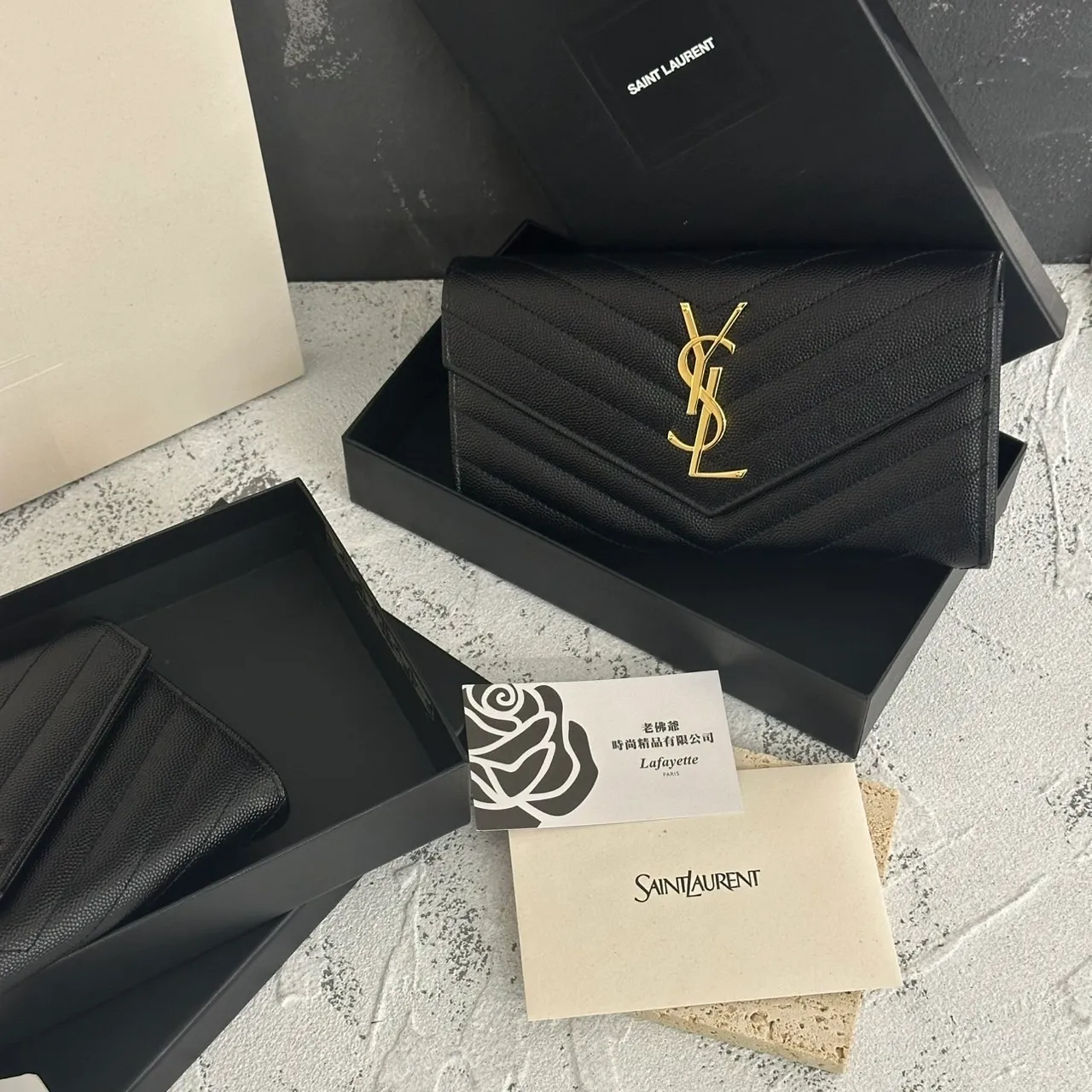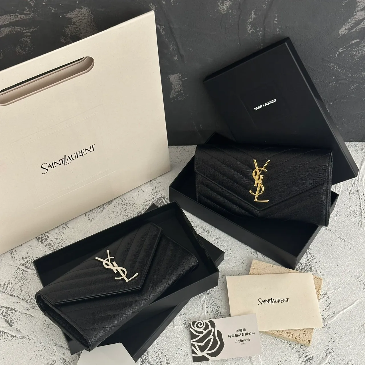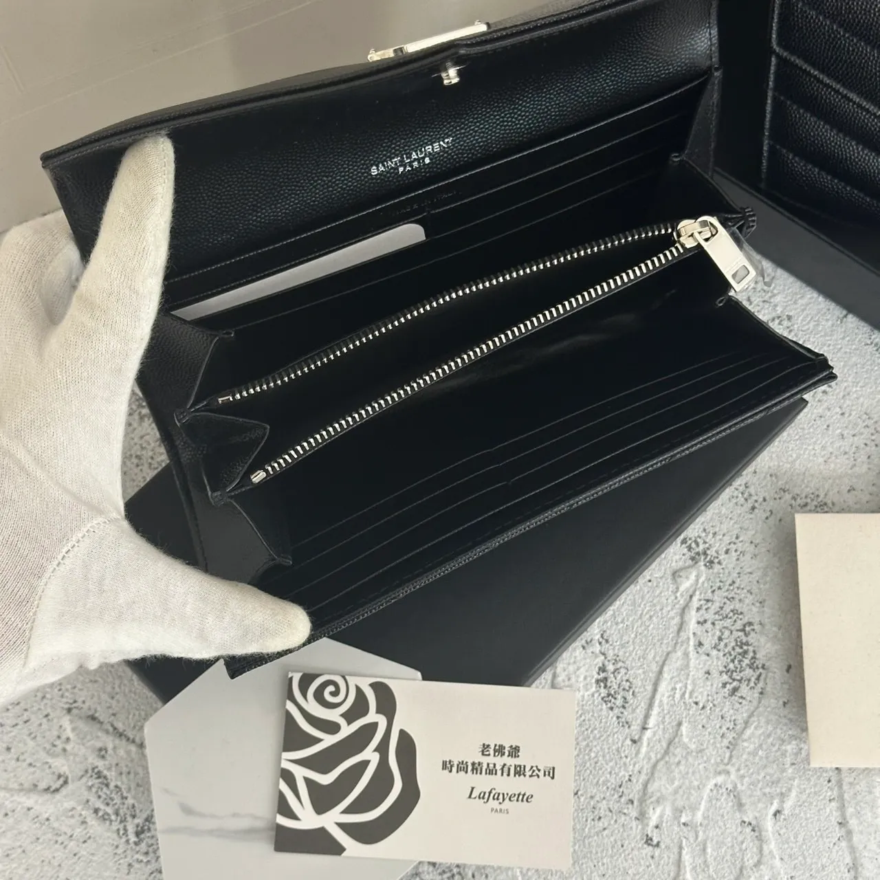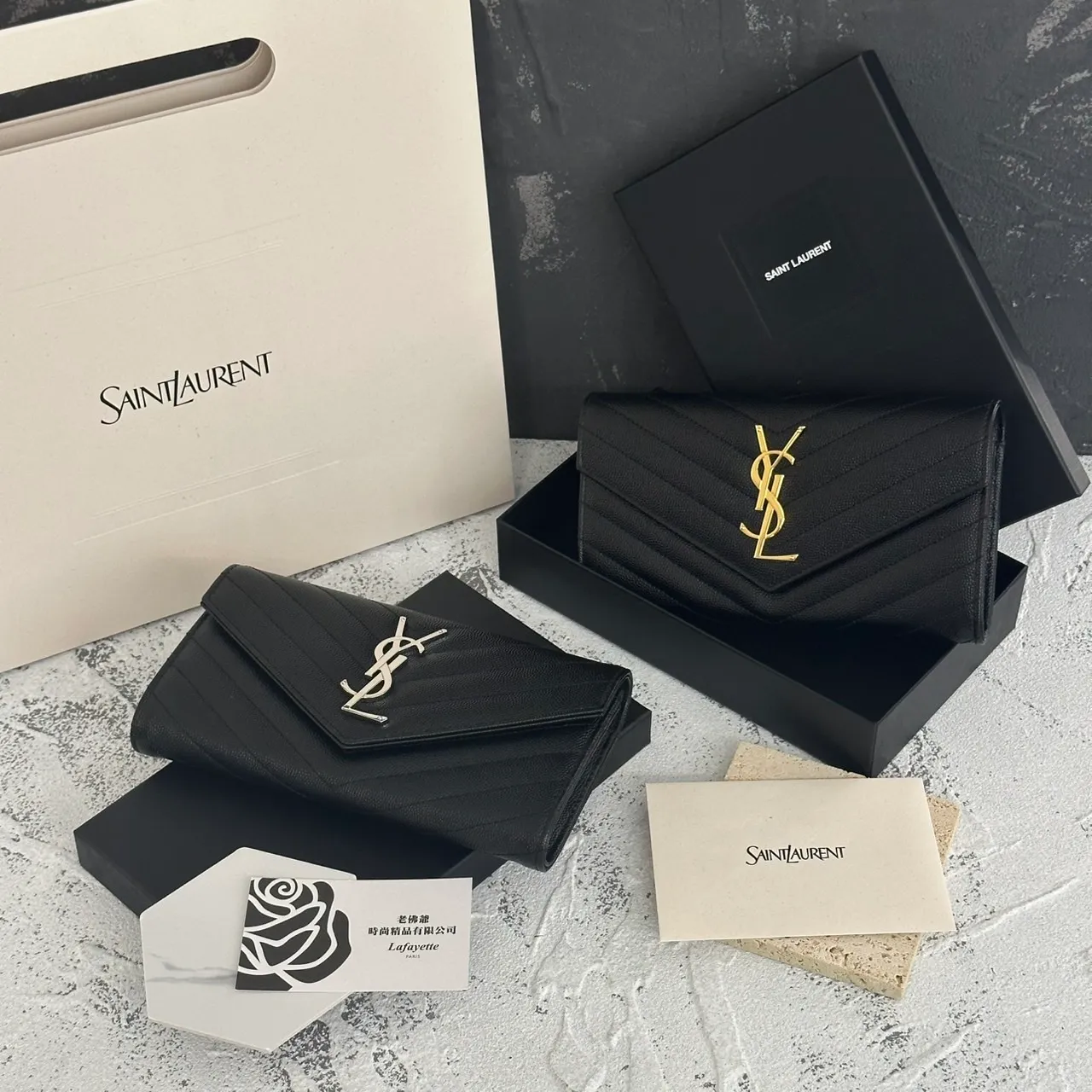 SAINT LAURENT 經典魚子醬牛皮信封長夾