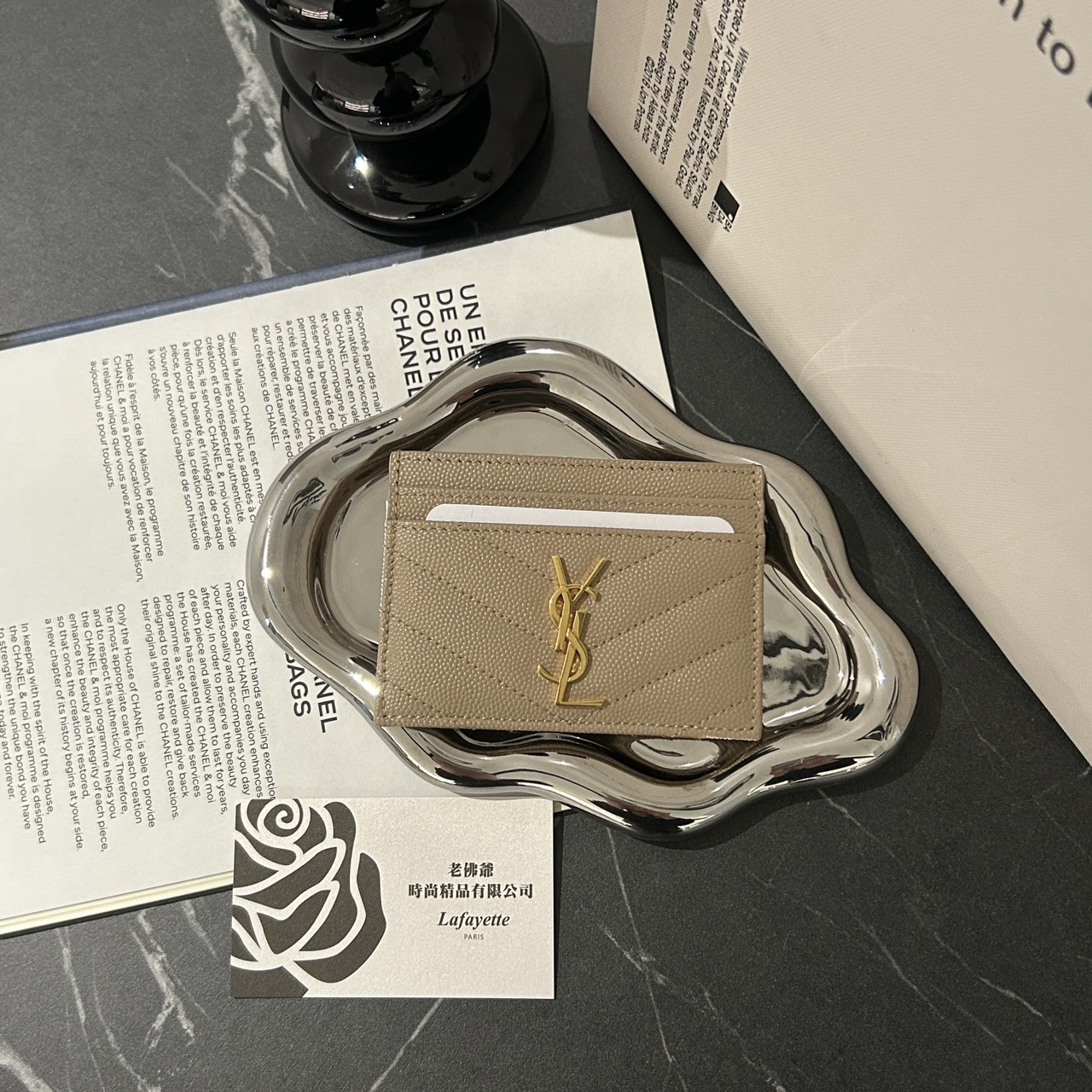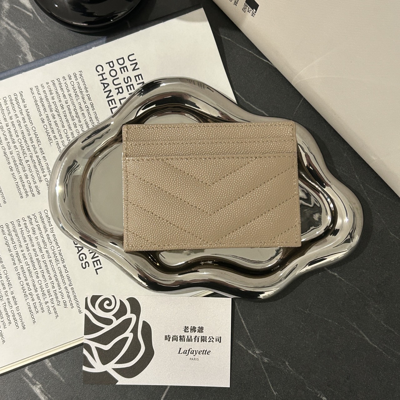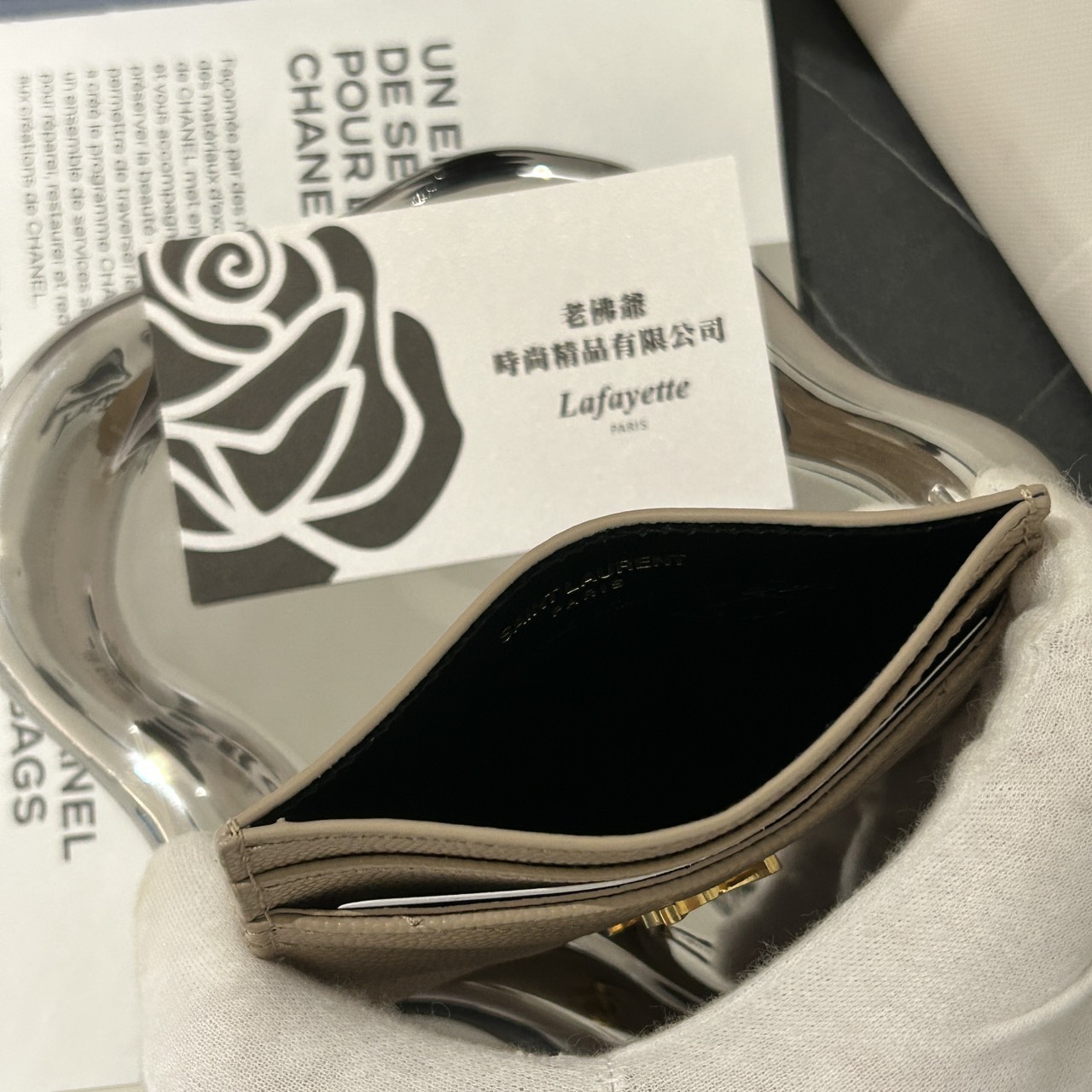 SAINT LAURENT 魚子醬牛皮奶茶金山型紋卡夾