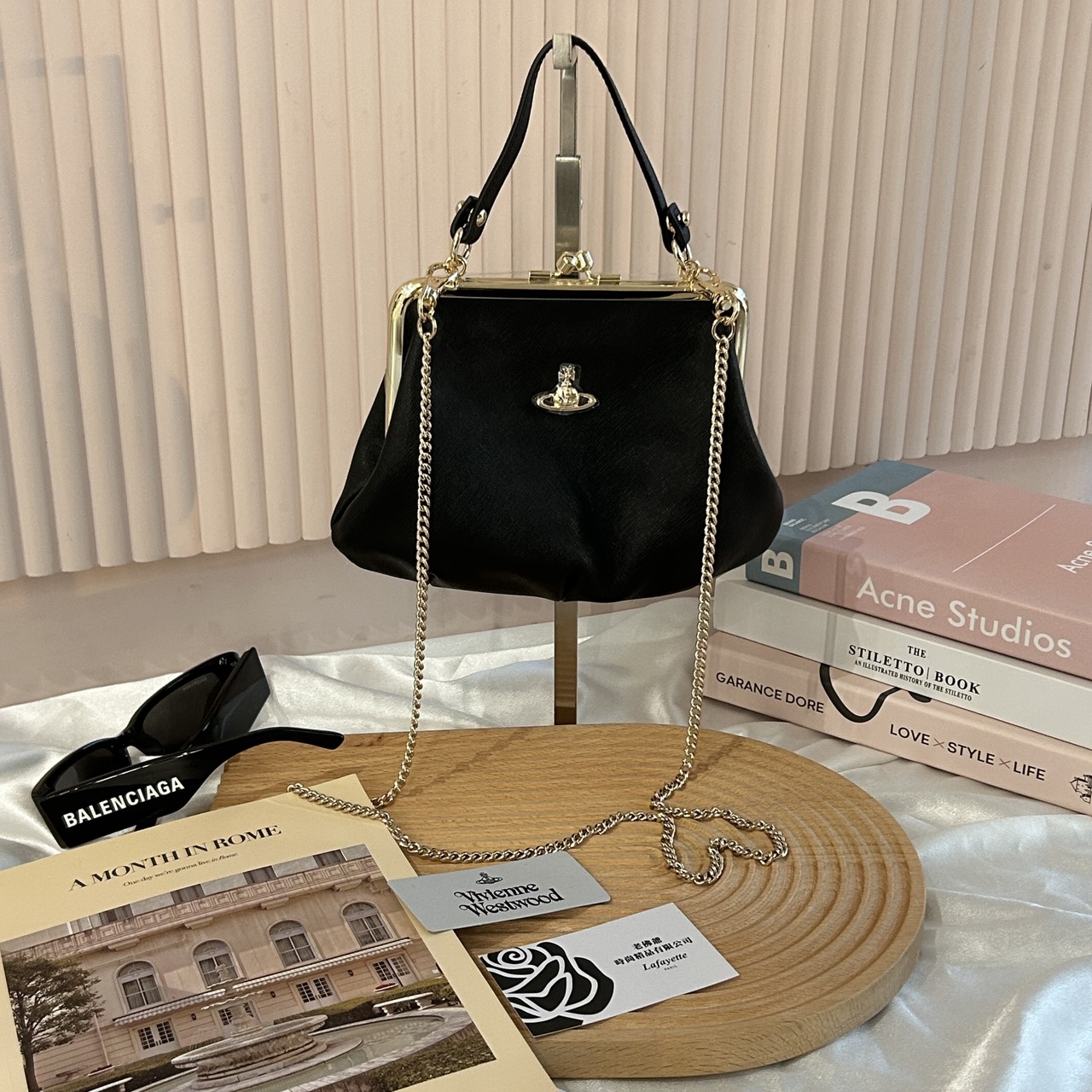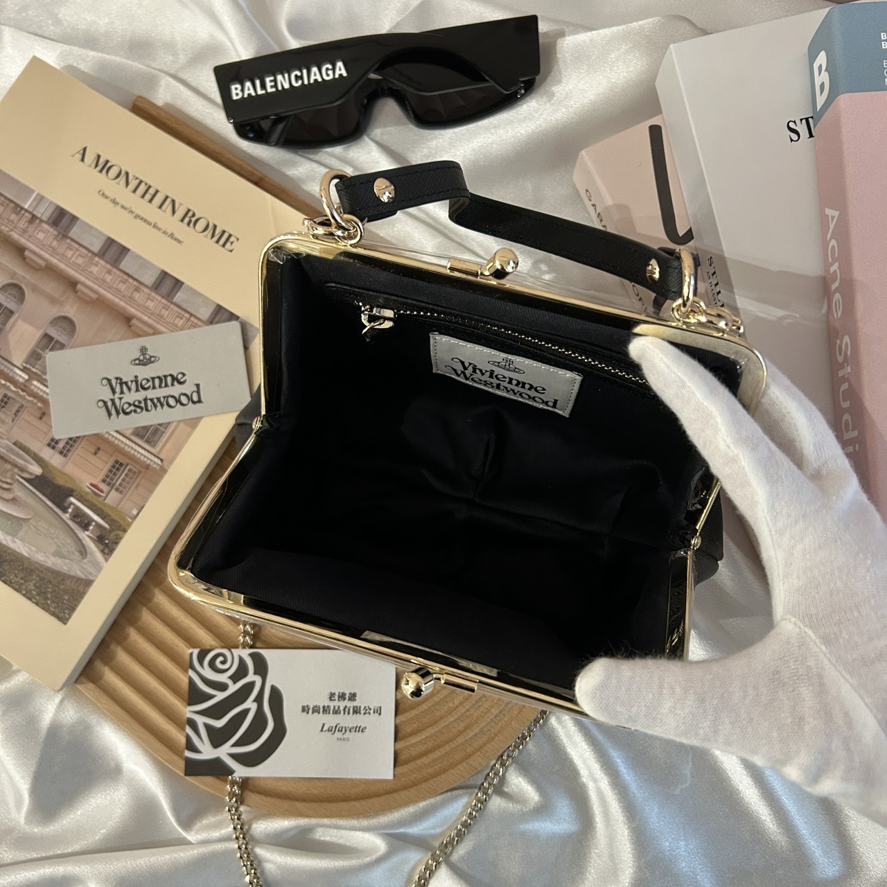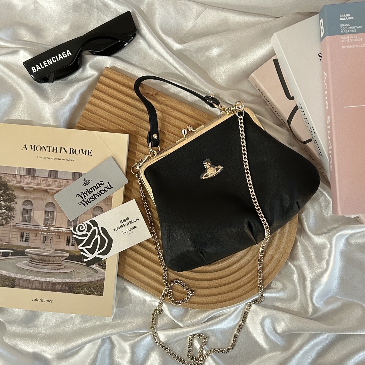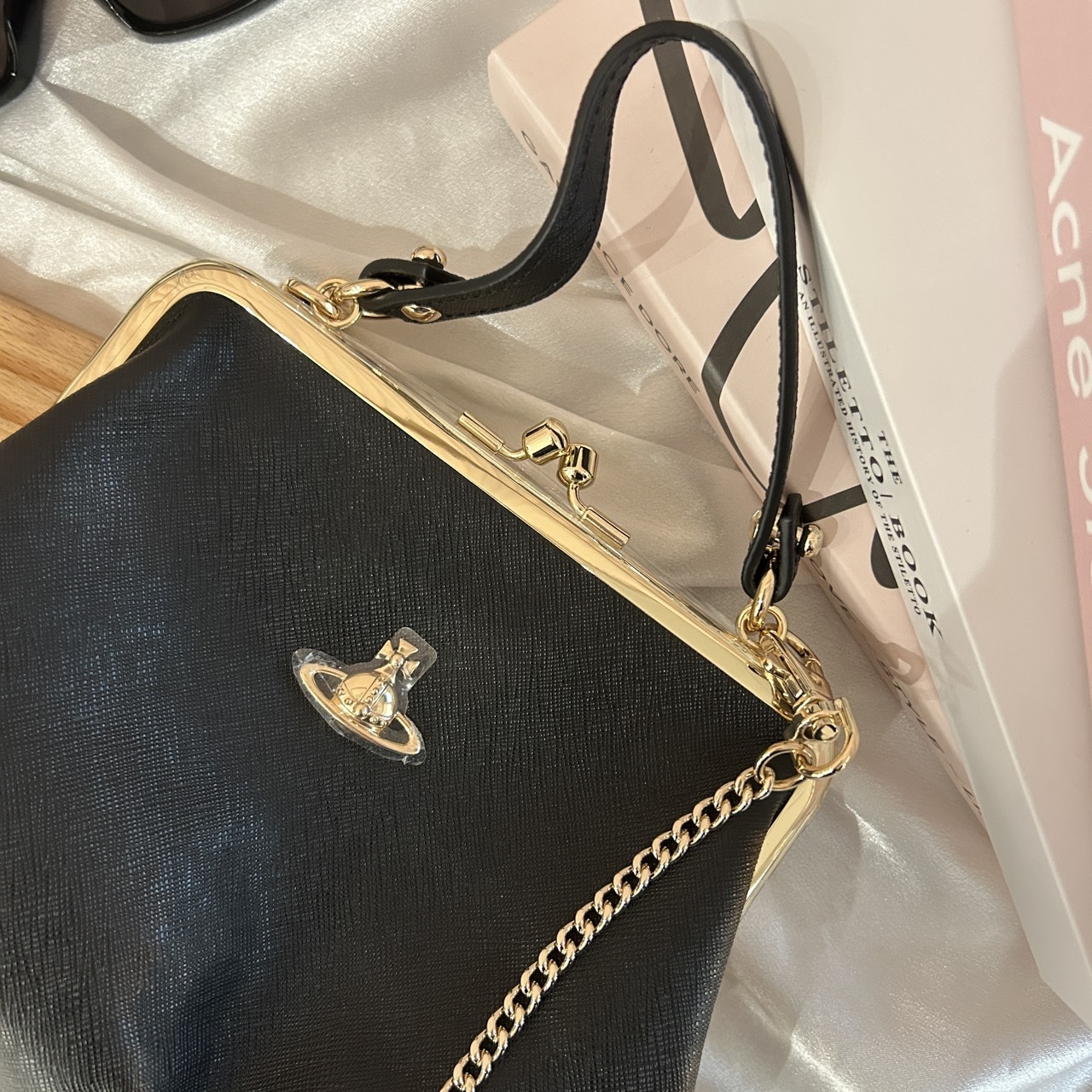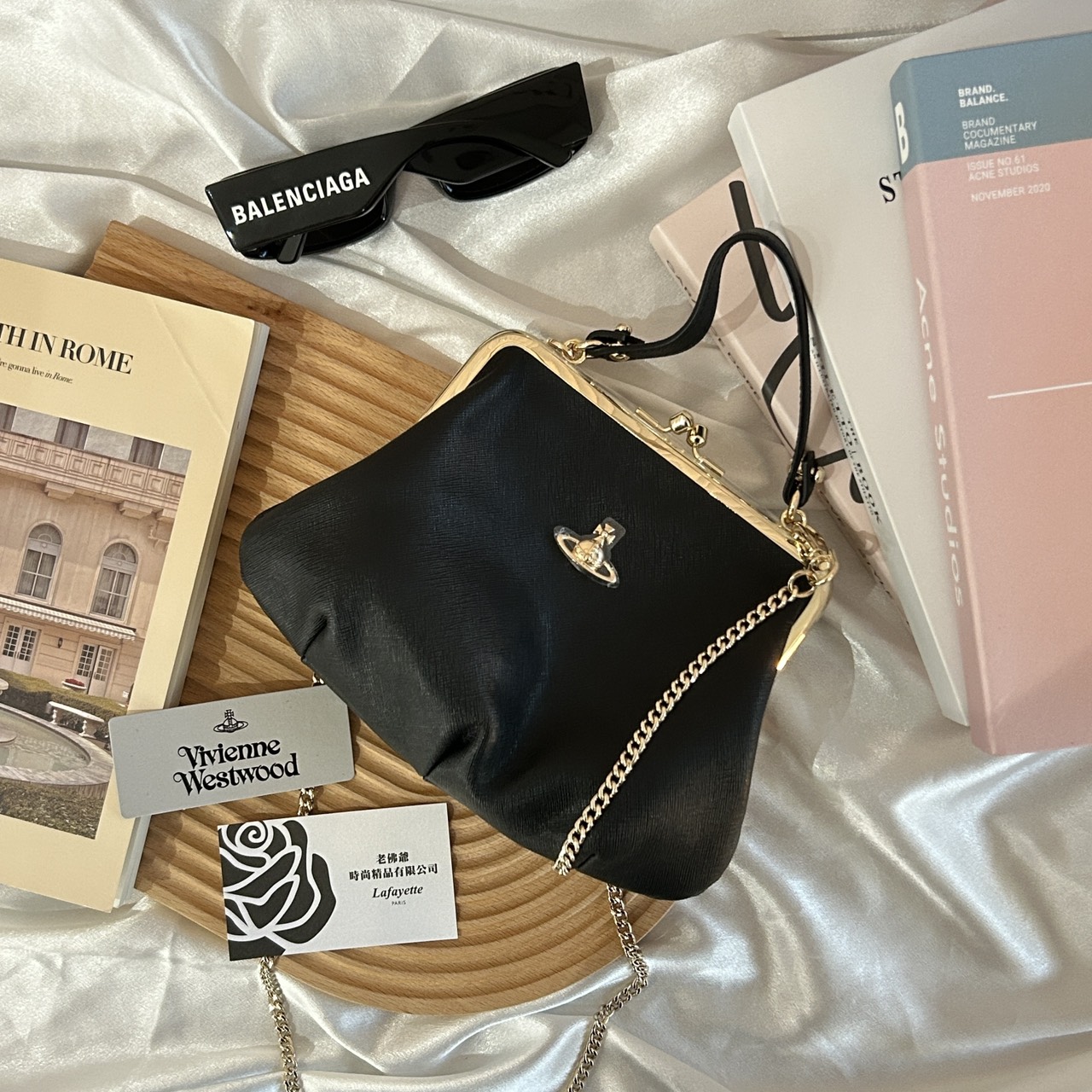Vivienne Westwood 黑金餃子十字紋牛皮可拆卸鏈條包