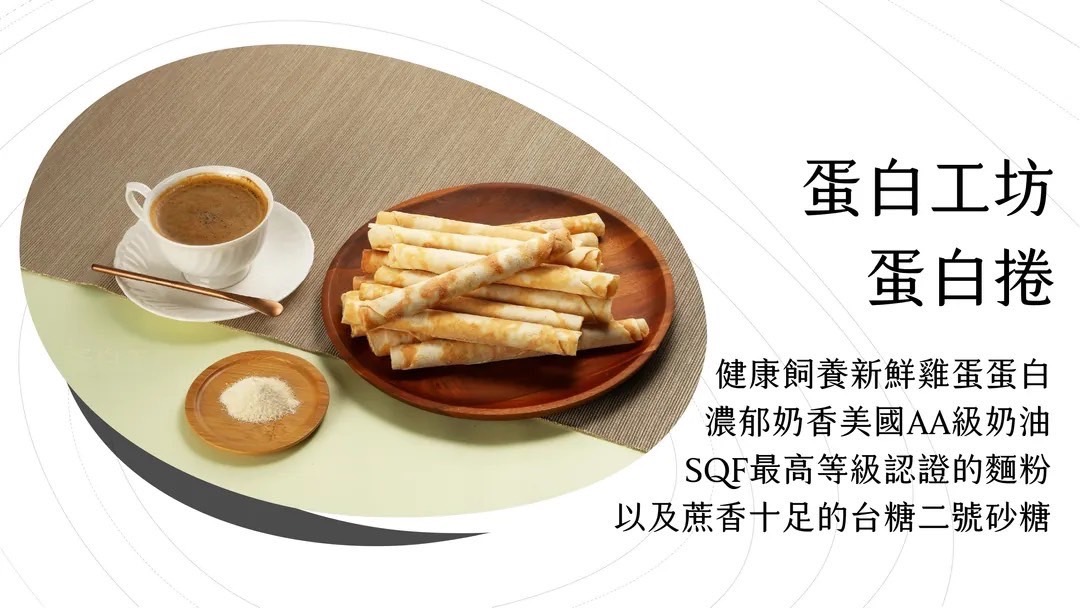 蛋白捲的色澤鮮艷,香氣濃郁,停留在口中還會回甘。