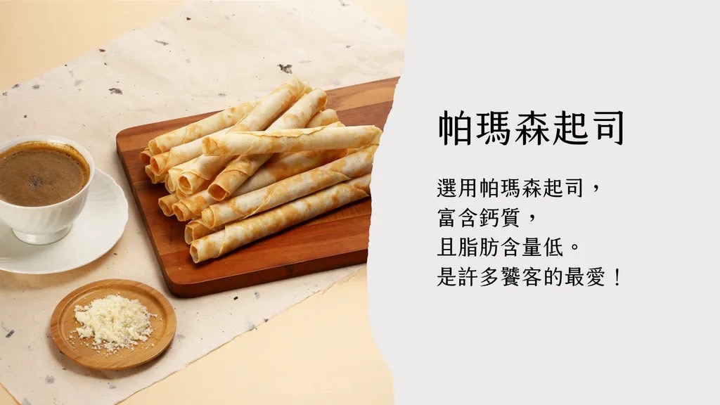 其富含鈣質且低脂肪的特性,也讓帕瑪森起司蛋捲成為許多顧客為之驚豔的口味之一。