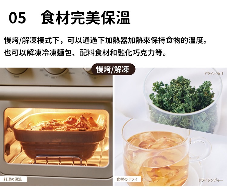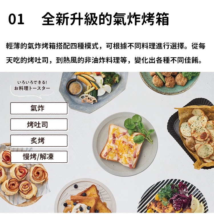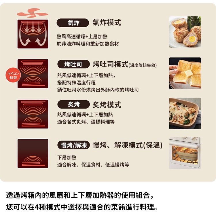 ●氣炸、炙烤、烤吐司、慢烤/解凍等四種料理模式