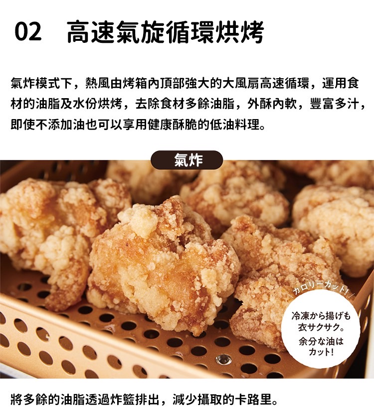 ●最高230°C高速氣旋循環烘烤,去除食材多餘油脂!