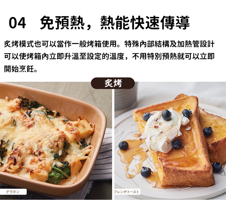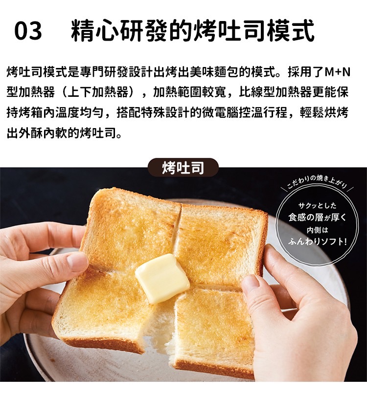 ●精心獨家研發烤吐司模式,輕鬆烤出外酥內軟的吐司!