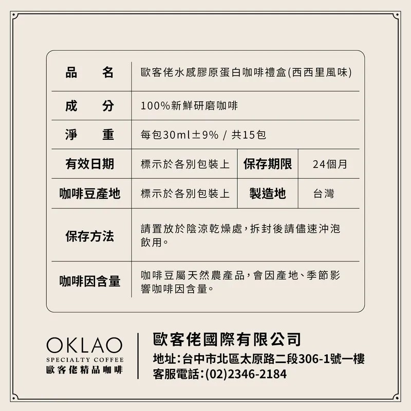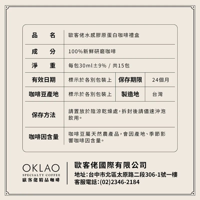 歐客佬【水感膠原蛋白咖啡】禮盒(15包/盒)