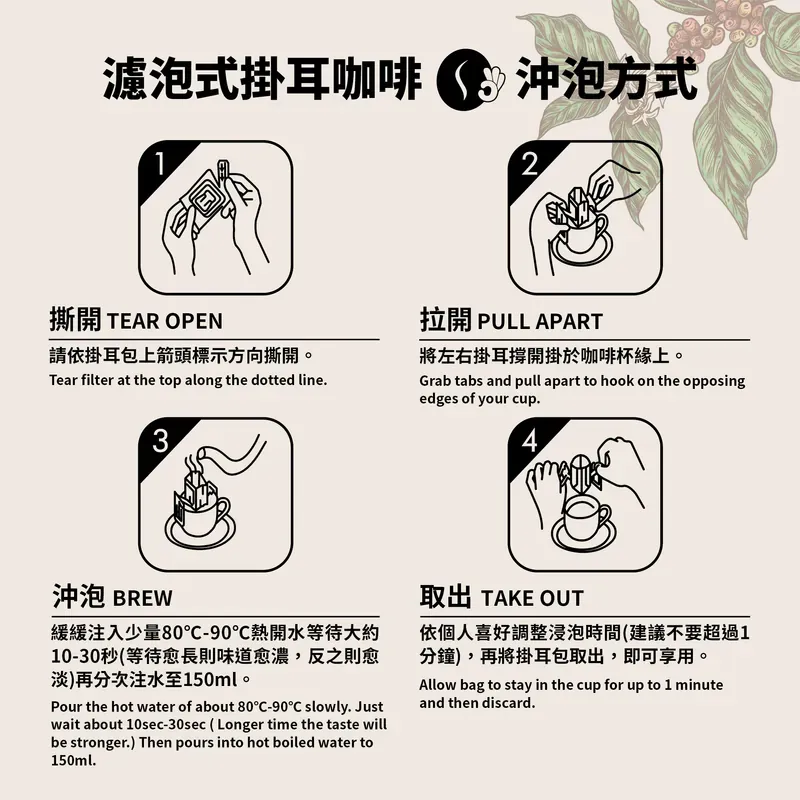 精品掛耳保存期限標示為18個月,因每款精品掛耳銷售量不一定,您收到的精品掛耳部分可能會在14個月以內賞味期,若無法接受請勿下單!
