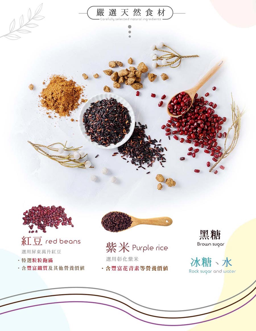 ●嚴選粒粒飽滿的屏東萬丹紅豆熬煮