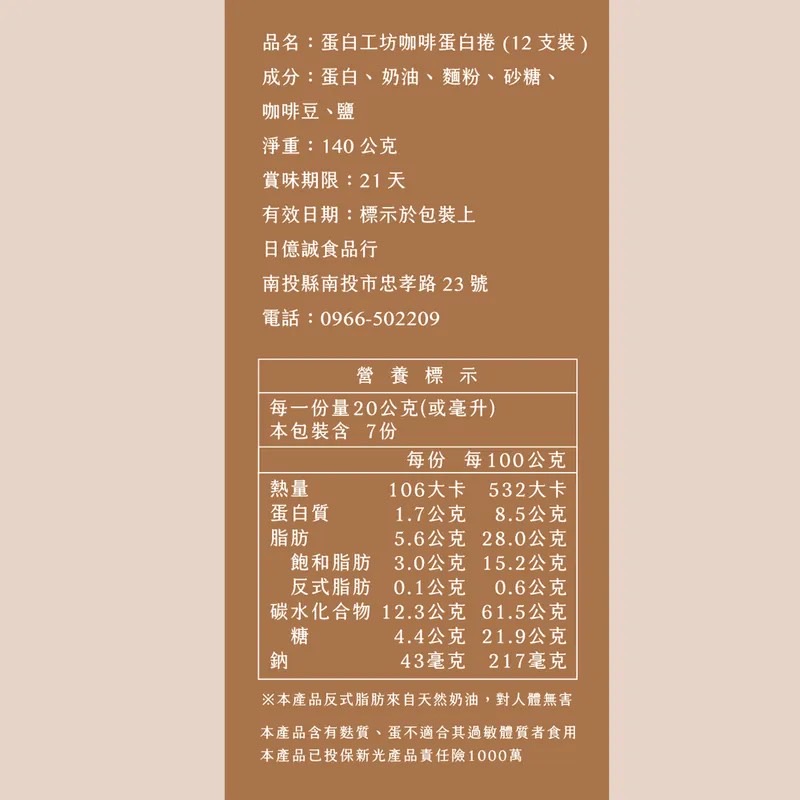 蛋白捲吃得到咖啡豆的香醇風味,就像喝到一口甘醇咖啡的愉悅感,絕對稱得上是咖啡中的王者!