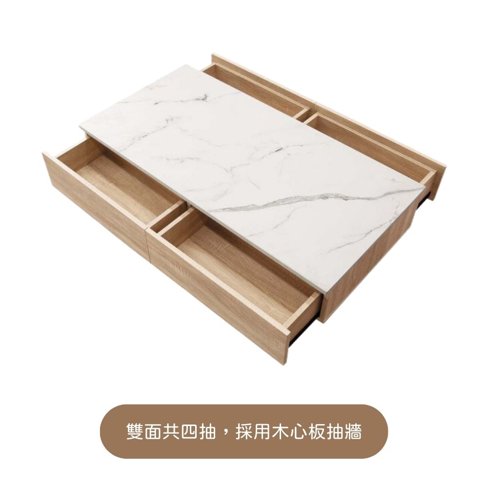 備註:兩面皆有抽屜,共4抽。大理石面置放高溫物品時,需於高溫物品下方墊隔熱墊保護檯面。