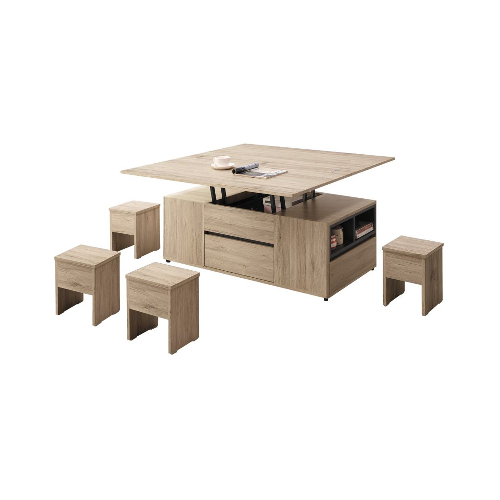 附四椅凳,可完全收進茶几內。