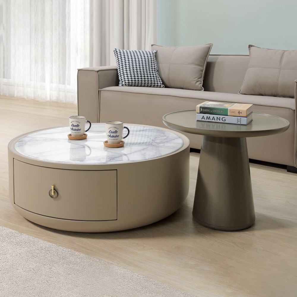大茶几桌面:採天然石基材人工加工美化,波麗漆塗裝微晶石面。