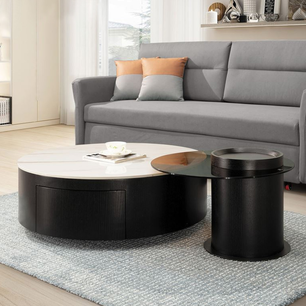 Talia|塔莉亞|羊脂白玉岩板面(黑身) 大小茶几