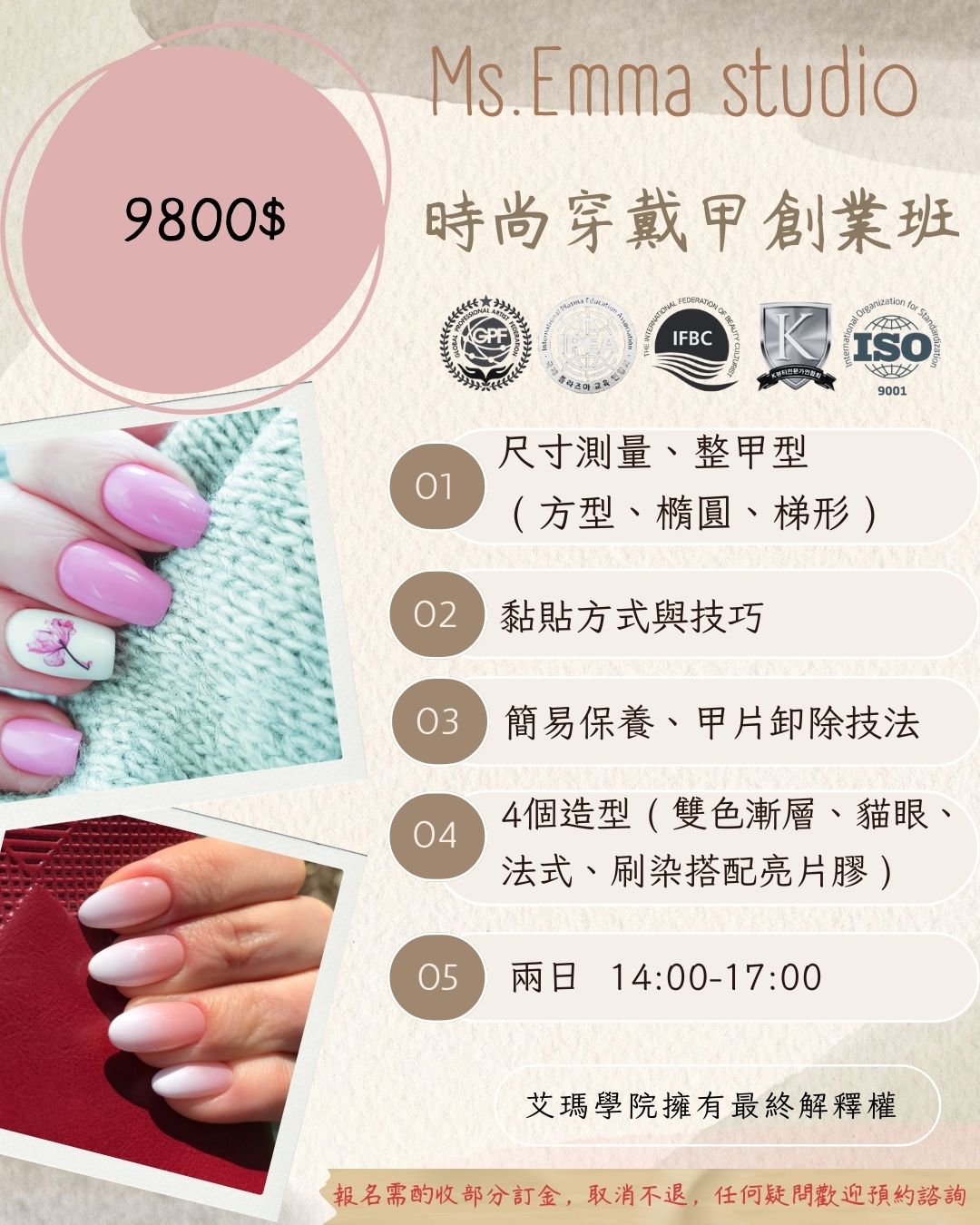 課程包含美甲、韓式皮膚管理、美睫、翹睫、熱蠟、採耳、國際證照輔導、國家美容丙乙級證照班