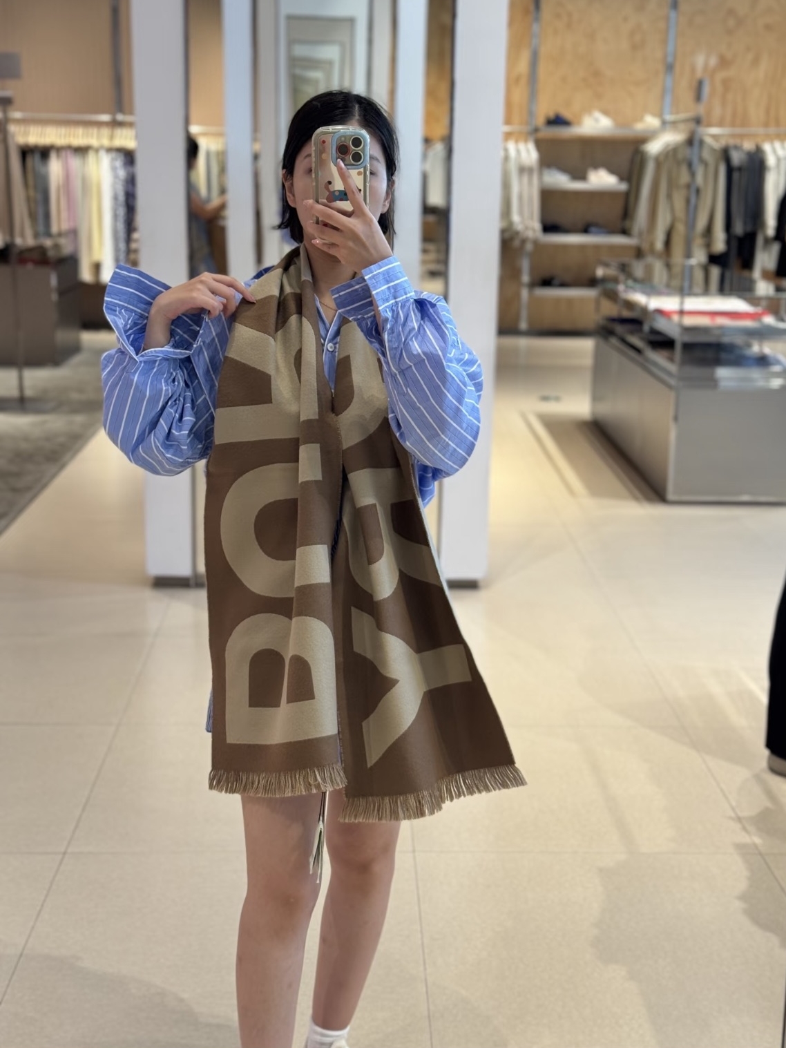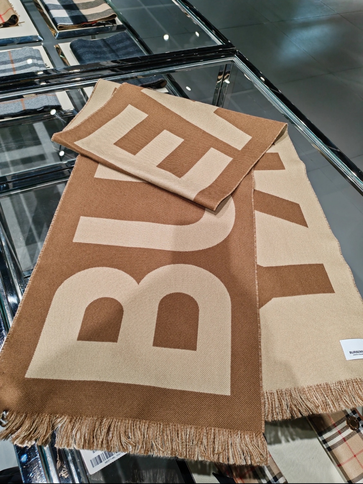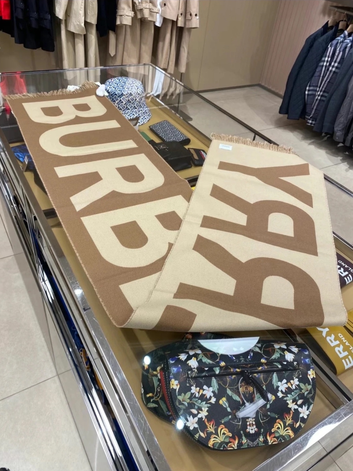 Burberry Logo 羊毛圍巾🧣 奶茶米配色太溫柔了☕🤎 大LOGO設計超有辨識度✨ 100%羊毛,輕暖柔軟,質感滿分~ 尺寸約33×188cm,男女都可搭💫
