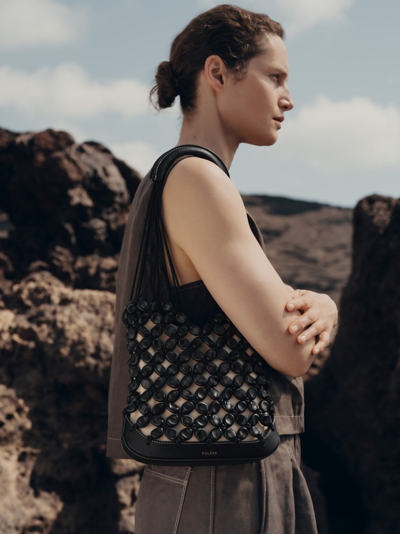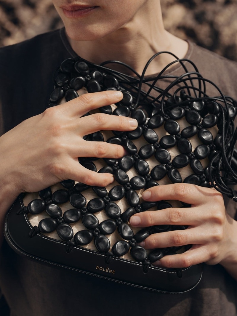 POLENE solé 鵝卵石手袋 黑色 🔥Lisa背紅的包 搭配皮革余料壓制而成的鵝卵石 繩結手工編織設計 📐26.5 cm x 15.5 cm x 7 cm