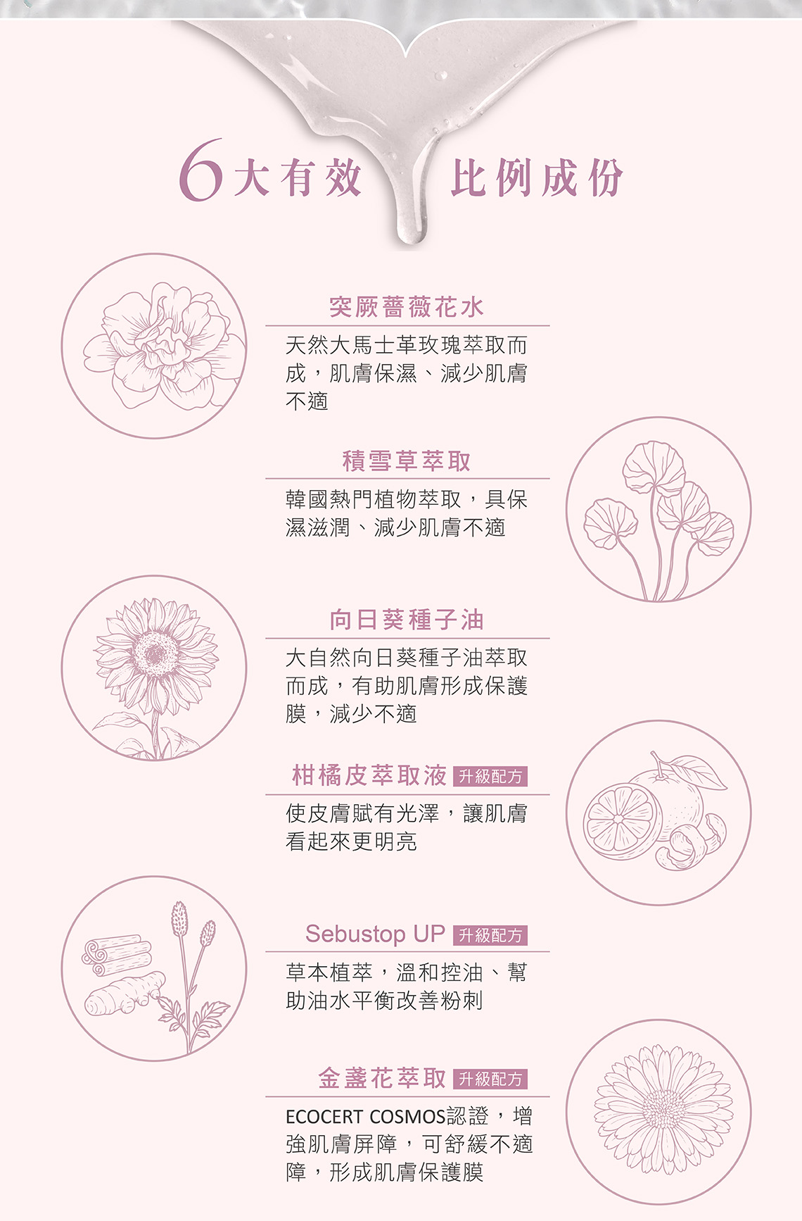 【歐盟有機認證成份 - 多項植物精萃】 產品特色:輕妝級清潔力,清潔後保濕不緊繃 主要成分:突厥薔薇花水、積雪草萃取、向日葵種子油、金盞花萃取、Sebustop UP 使用時機:取適量水搭配此產品,再以綿密細泡清潔,保濕淨透!