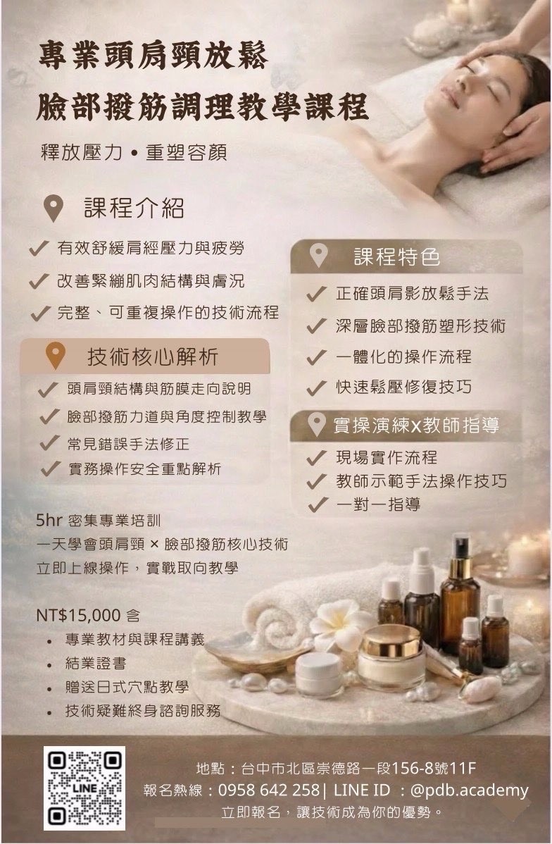 專業頭肩頸放鬆臉部撥筋課程