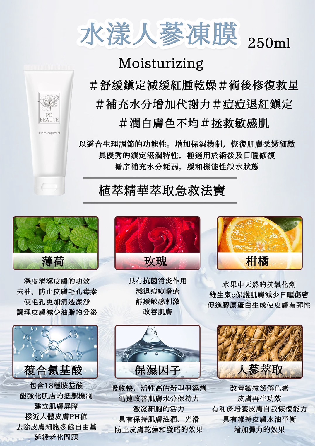 具優秀的鎮定滋潤特性,極適用於術後及日曬修復