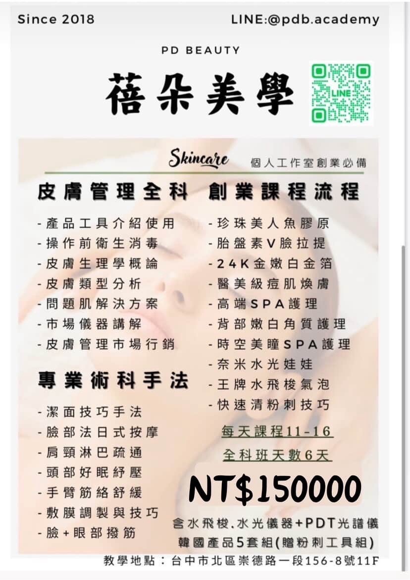 • 理論與行銷: 包含皮膚生理學、類型分析、問題肌解決方案、儀器講解及市場行銷。