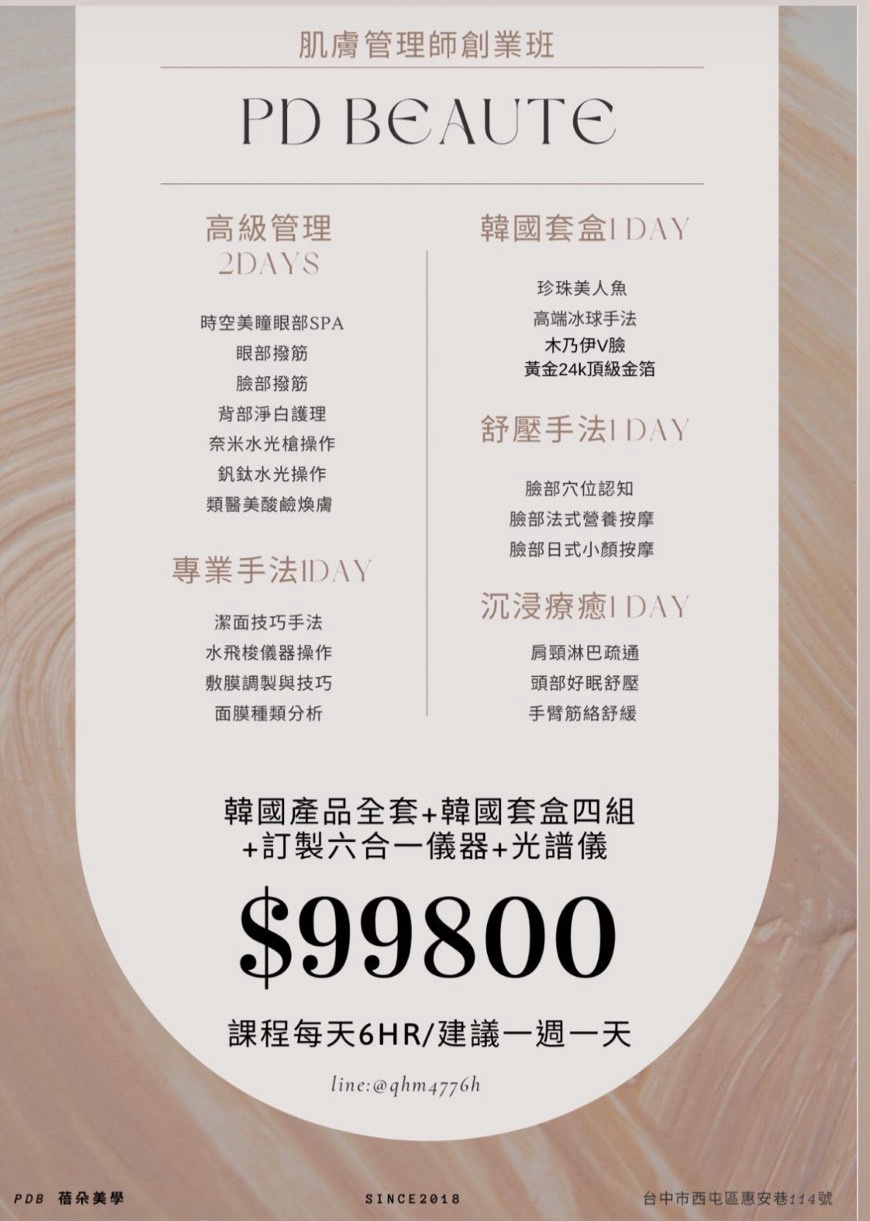 韓國產品全套+韓國套組4盒+訂製六合一儀器+光譜儀 課程每天6HR 每週1日