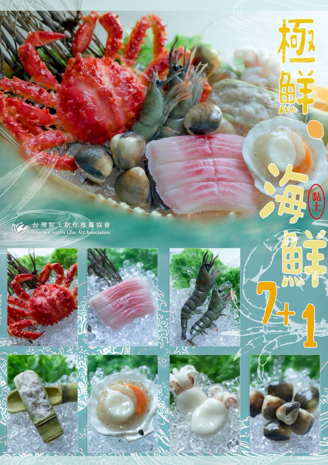 海陸總動員共有10項作品內容生菜、螃蟹、蛤蠣、小章魚、扇貝、鯛魚片蝦子、魚漿、霜降牛肉、梅花豬肉