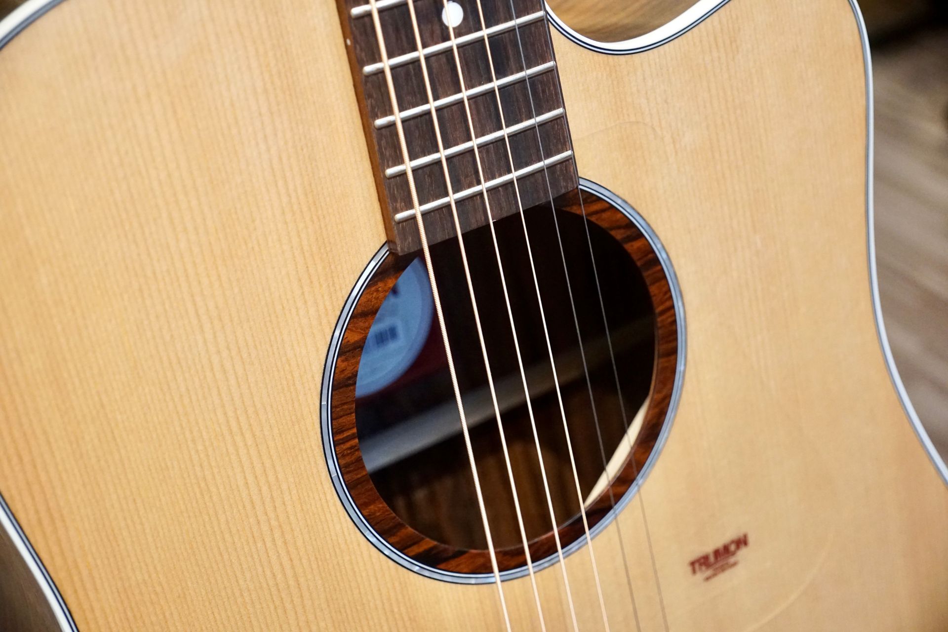 . 楚門吉他,每一把都有成為經典的理由 讓“楚門的每一把吉他都有成為經典的理由”是楚門一直以來謹以執行的理念與標準,專注於吉他本身,完美主義的細節優化,近乎偏執的忍受與堅持是楚門吉他近幾年迅速在國內聲名鵲起的最大理由。 在走訪、研究了眾多國外手工琴的工藝和制琴經驗之後,楚門引進和借鑒了國外名琴的精髓,德國的琴頸五拼工藝,澳大利亞的琴頸調節技術,參考了大量名琴V補強的設計... 在這個過程中,楚門做出了自己大量的創新與改進,內鑲式的手工口輪、超低柄尾設計、台灣定制的高精度防偽弦鈕,也帶動了桑托斯玫瑰木在高端制琴上的廣泛普及...這數不勝數的用心制作無不直接證明著楚門吉他的大量心血。 一直以來,對於楚門來說,創新不是追求最新,而是回到吉他本身,去思考,對於吉他而言,究竟什麽才是最重要的。楚門吉他希望自己的每一款產品都有其特有的價值與存在的意義,正是因為這種細節處的反覆思考與精雕細琢,才得到了今天的楚門,使之每一把楚門吉他都有了成為經典的可能。 .桶形:41吋D/DC桶形 .弦鈕:高質感鍍鉻弦鈕 .面板:西堤卡雲杉單板 .指板:玫瑰木 .背側板:雙面印度玫瑰木合板 .塗漆:啞光 原木自然色 .琴頸:桃花心木琴頸 .琴橋:玫瑰木 .拾音器:可加裝TSE1智能原聲拾音器 .上下枕:牛骨 .指板鑲嵌:直徑6mm白蝶貝 .琴弦:美產達達里奧XS . 配件:標準配件組+原廠厚琴袋