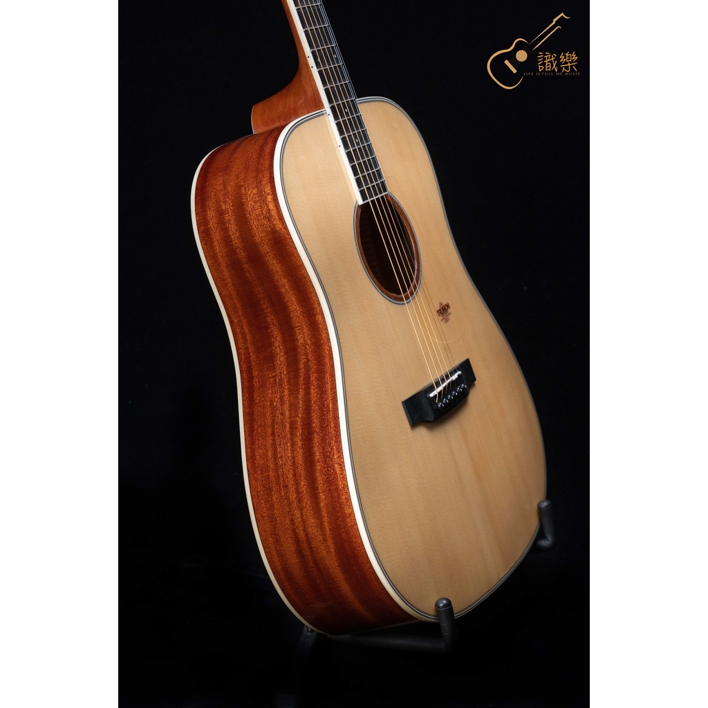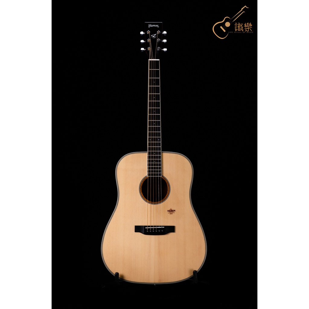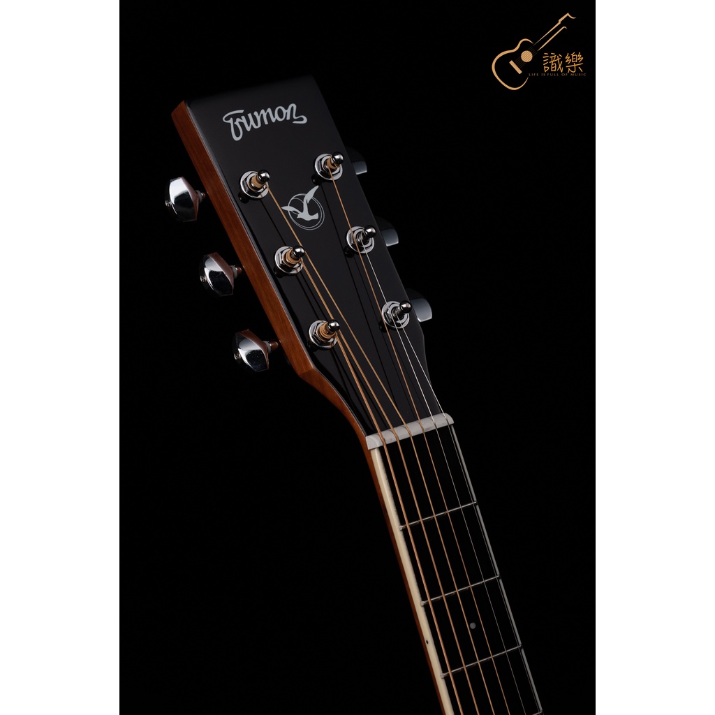 .楚門吉他,每一把都有成為經典的理由 讓“楚門的每一把吉他都有成為經典的理由”是楚門一直以來謹以執行的理念與標準,專注於吉他本身,完美主義的細節優化,近乎偏執的忍受與堅持是楚門吉他近幾年迅速在國內聲名鵲起的最大理由。 在走訪、研究了眾多國外手工琴的工藝和制琴經驗之後,楚門引進和借鑒了國外名琴的精髓,德國的琴頸五拼工藝,澳大利亞的琴頸調節技術,參考了大量名琴V補強的設計... 在這個過程中,楚門做出了自己大量的創新與改進,內鑲式的手工口輪、超低柄尾設計、台灣定制的高精度防偽弦鈕,也帶動了桑托斯玫瑰木在高端制琴上的廣泛普及...這數不勝數的用心制作無不直接證明著楚門吉他的大量心血。 一直以來,對於楚門來說,創新不是追求最新,而是回到吉他本身,去思考,對於吉他而言,究竟什麽才是最重要的。楚門吉他希望自己的每一款產品都有其特有的價值與存在的意義,正是因為這種細節處的反覆思考與精雕細琢,才得到了今天的楚門,使之每一把楚門吉他都有了成為經典的可能。 .桶形:41寸D型 .弦鈕:博韻鍍鉻方形旋鈕 .面板:精選西提卡雲杉合板 .口輪花:桃花心內鑲口輪 .背側板:精選非洲桃花心 .塗裝:手工噴塗高清亮光漆/原色 .琴頸:那都木 .琴頭:品牌Logo和定制海鷗圖案 .琴頸手感:21±0.5(1F)-21±0.5(9F)mm .上下枕:純白塑鋼 .指板:科技玫瑰木 .琴弦:雅閣士六角磷銅 .指板鑲嵌:ф3mm正音點鑲嵌 .弦長:41寸648mm+2mm/36寸596mm±1.5mm .下碼:科技玫瑰木 .護板:0.21mm透明護板