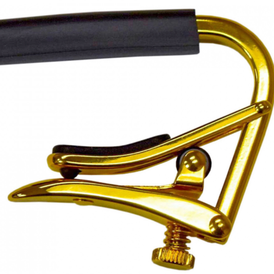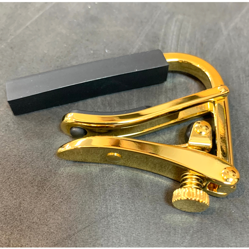 Shubb於1974年就開始生產專業的移調夾, 為全球頂級移調夾生產廠家,是所有移調夾的始祖。 SHUBB CAPO 的特色: 1. 使用的橡膠材質柔軟,可以帶來如同指尖一般的觸感,能將琴弦壓在適當的位置同時避免雜音的出現。 2. 專利滾輪及弧形槓桿設計,可以平均 CAPO 鎖緊時的壓力,在不同形狀和琴頸上都能提供合適的壓力。 3. 專利閉合設計,為閉合後的緊度提供精確的控制,保證了緊度一致和使用時的順暢程度。 4. 一次性調整,在同樣的使用情況下不需每次都重新調整,為結他提供理想的壓力,使用更方便。 SHUBB CAPO 的款式多樣化,提供了由鋁合金、不鏽鋼、黃銅等不同物料製作的 CAPO,也有不同的顏色、面料質感的選擇。 型號:C1g 規格:Royale 顏色:尊爵金色 適用:民謠吉他、電吉他 材質:黃銅電鍍