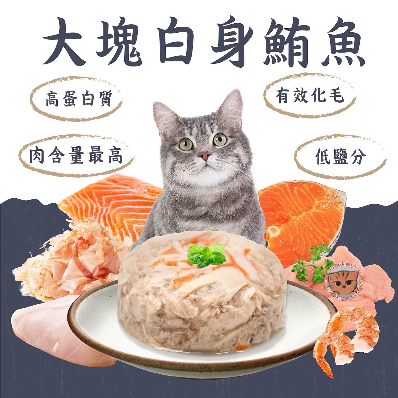 成分:白身鮪魚、鮭魚、蔬菜膠、維生素E、果寡糖