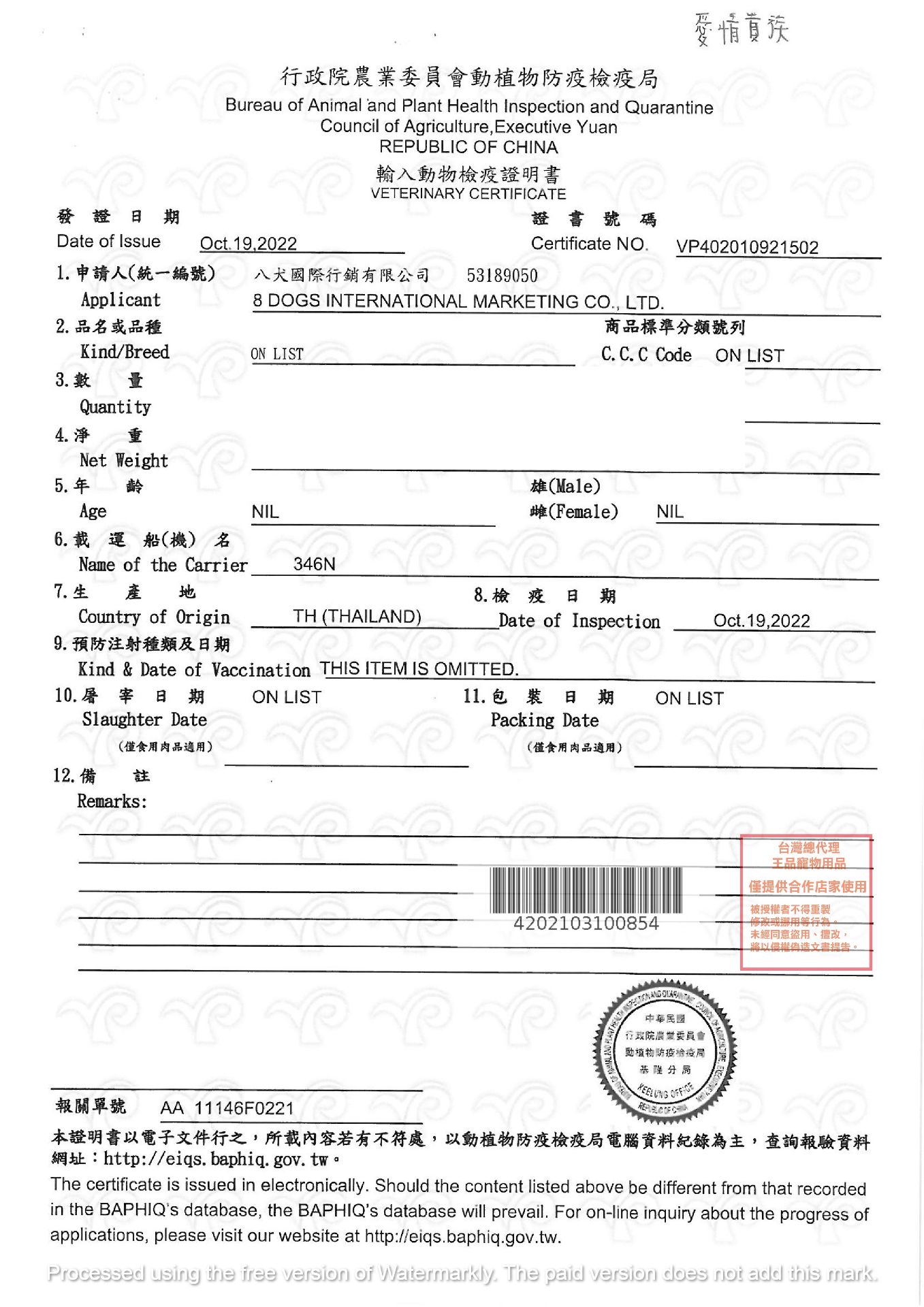 營養分析:蛋白質12%以上、脂肪0.2%以上、纖維質1.0%以下、灰分0.2%以下、水分84%以下