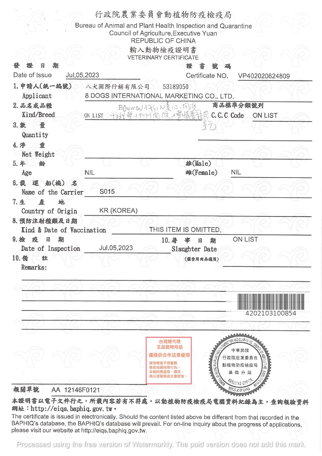 營養分析:粗蛋白質≧5.00%、粗脂肪≧0.20%、鈣≧ 0.01%、磷≧ 0.01%、粗纖維≦1.00%、粗灰分≦1.00%、水份≦ 90.00%